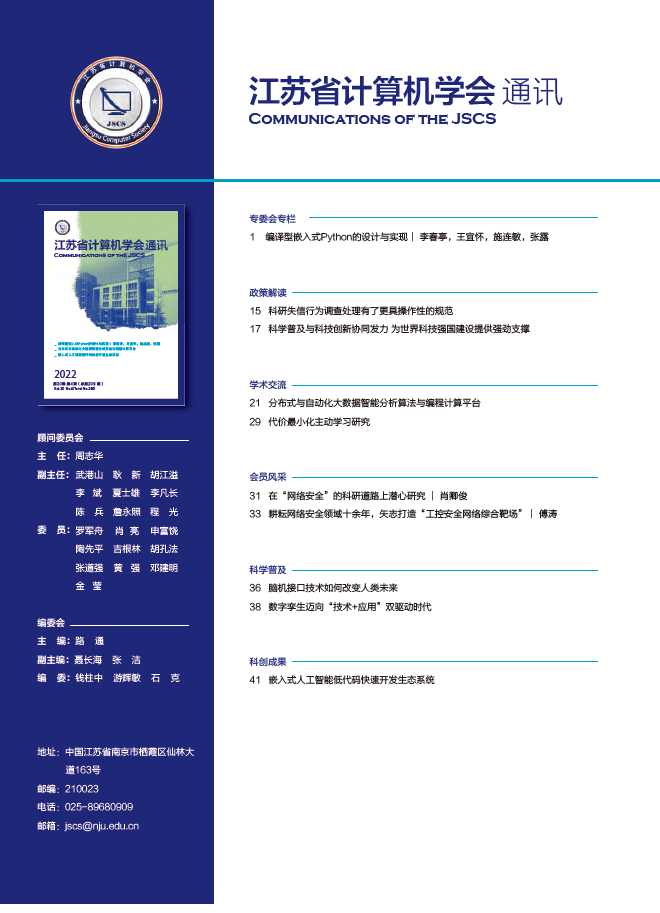 Copyright (c) 版权所有 江苏省计算机学会 南京网站建设公司 秘书处办公室 地址: 江苏省南京市仙林大道163号 邮编:210023 电话/传真:025-89680909 秘书处市内联络点 地址: 江苏省南京市汉口路22号 邮编:210093 电话/传真:025-86635622 电子邮箱:jscs@nju.edu.cn 网址:www.jscs.org.cn 技术支持:南京成旭通信息技术有限公司