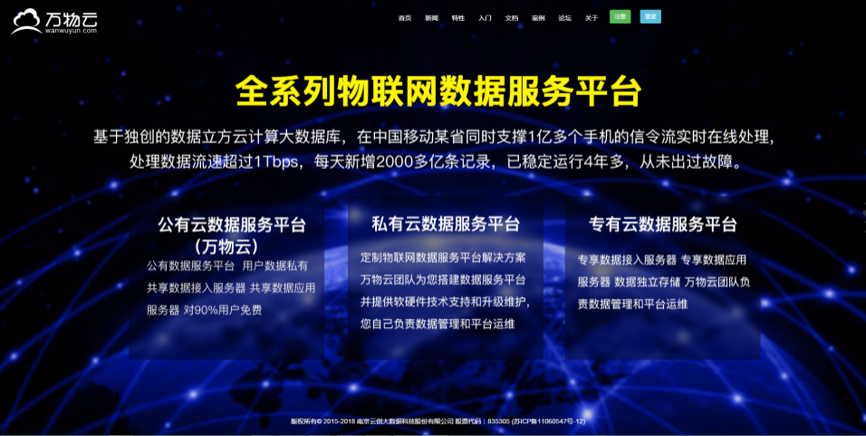 目前万物云智能硬件大数据托管平台已经和多家企业签订了战略合作协议和项目合同,并取得其认可,使用效果满意。企业包括江苏京东信息、南京感动科技、上海凯盛朗坤信息、南京西奥仪表测控等。
