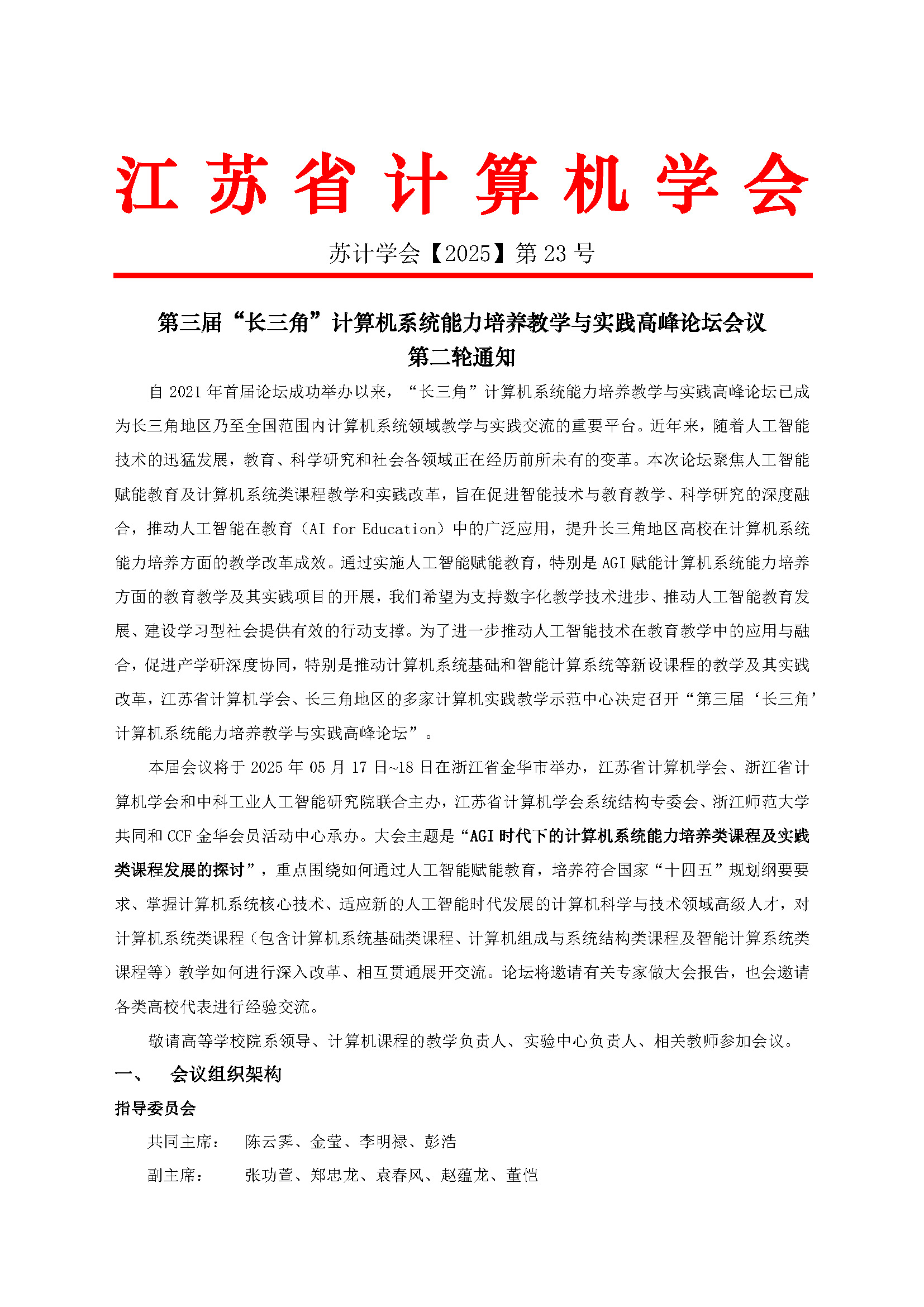 第三届“长三角”计算机系统能力培养教学与实践高峰论坛会议第二轮通知