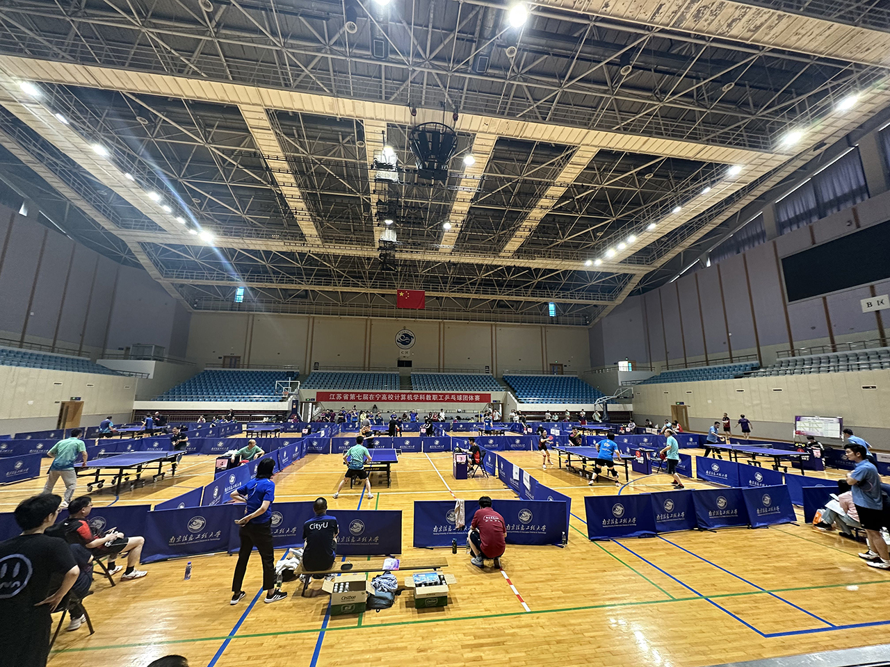 4月19日,江苏省第七届在宁高校计算机学科教职工乒乓球团体赛在南京信息工程大学举行。本届赛事由江苏省计算机学会主办,南京信息工程大学计算机学院、网络空间安全学院承办,来自在宁高校的计算机学科院系的13支代表队以及1支省外联队,共14支参赛队伍的110余名教师参加了比赛。南京信息工程大学校党委副书记闵锦忠教授;江苏省计算机学会副理事长、南京大学计算机学院党委书记武港山教授;赛事组委会主任、南京大学陶先平教授;赛事组委会委员、南京理工大学张功萱教授;赛事组委会委员、南京信息工程大学计算机学院院长付章杰教授出席开幕式。开幕式由南京信息工程大学计算机学院党委书记张京波主持,江苏省计算机学会副理事长武港山教授致开幕辞,南京信息工程大学党委副书记闵锦忠教授致欢迎辞并宣布比赛开幕。