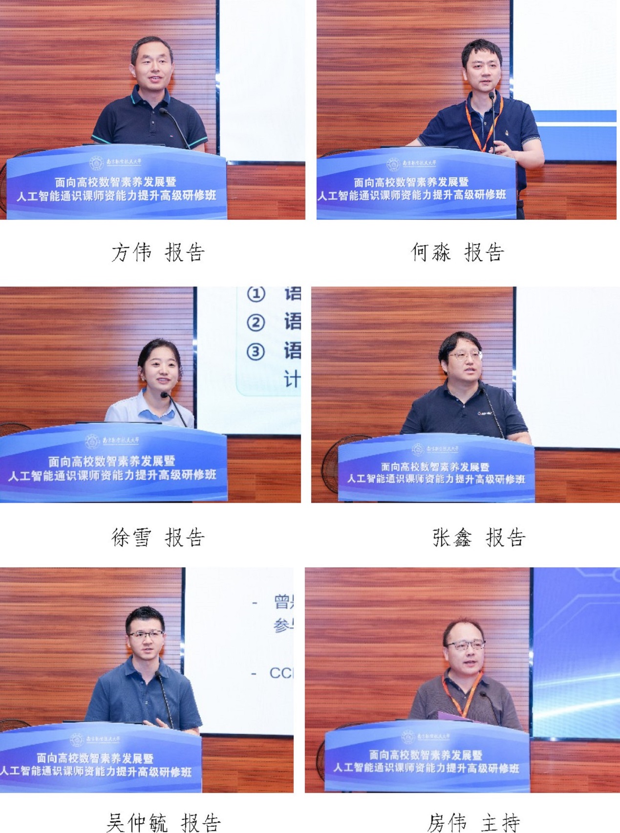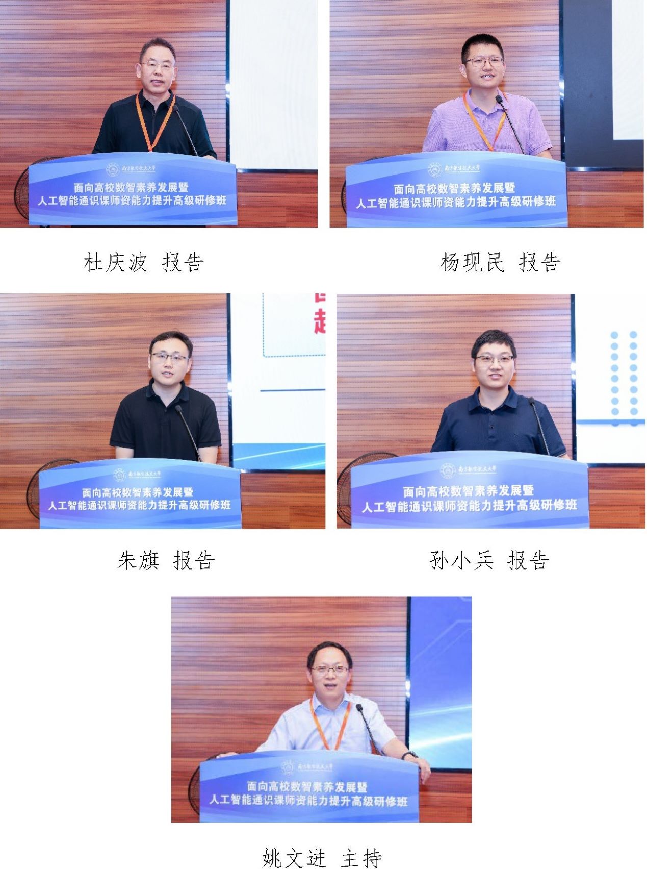 7月4日下午,会议邀请了南京信息职业技术学院副校长杜庆波教授,江苏师范大学党委委员、人事处处长杨现民教授,南京航空航天大学人工智能学院副院长朱旗教授,扬州大学信息工程学院(人工智能学院)院长孙小兵教授分别作主题报告,由南京理工大学教务处处长姚文进主持。