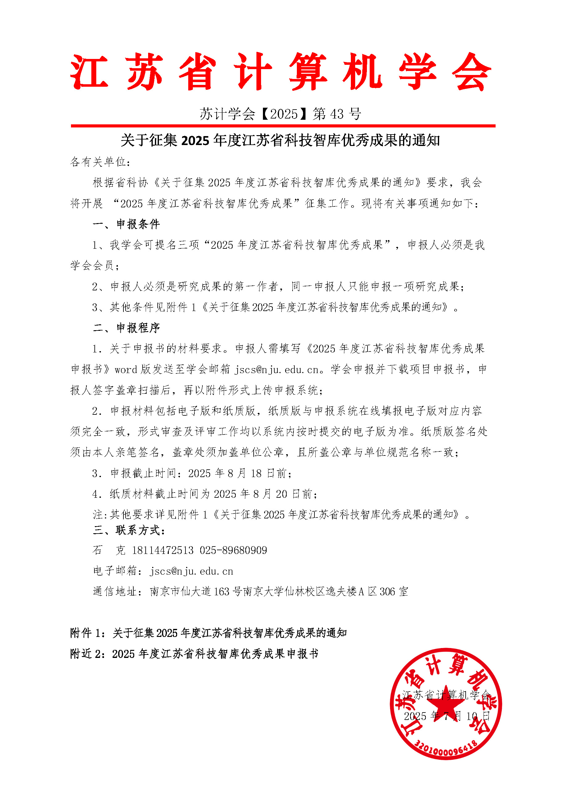 附件1:关于征集2025年度江苏省科技智库优秀成果的通知