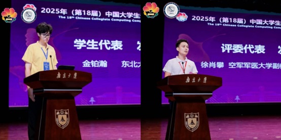 大赛还邀请了获奖学生代表东北大学金铂瀚、评委代表空军军医大学副教授/研究员徐肖攀进行了发言,他们分别从参赛学生和评审专家的角度表达了大赛公平公正公开一贯原则。