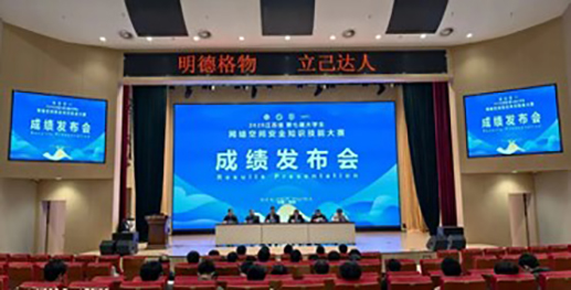 各参赛代表队经过激烈的奋战,本科院校组、职业院校组及特邀企业组最终分别决出各奖项,本届赛事获奖情况附后。赛事组委会于11 月 16 日 18:30进行成绩发布会,全体参赛队代表齐聚于南京信息工程大学报告厅,共同见证荣誉揭晓的高光时刻。江苏省计算机学会信息安全专委会副主任兼秘书长刘亚丽教授主持成绩发布会,特邀江苏省计算机学会秘书长、南京大学金莹教授公布本届大赛决赛的获奖名单,江苏省计算机学会信息安全专委会主任、大赛承办单位南京信息工程大学计算机学院/网络空间安全学院院长付章杰教授为本届大赛作总结讲话。大赛专家江苏大学赵跃华教授和李致远教授、江苏省计算机学会职业院校产教融合专家委员会副秘书长/南京米好信息安全有限公司胡正好总经理、中科烛照(南京)信息技术有限公司王照伟总经理共同出席成绩发布会。