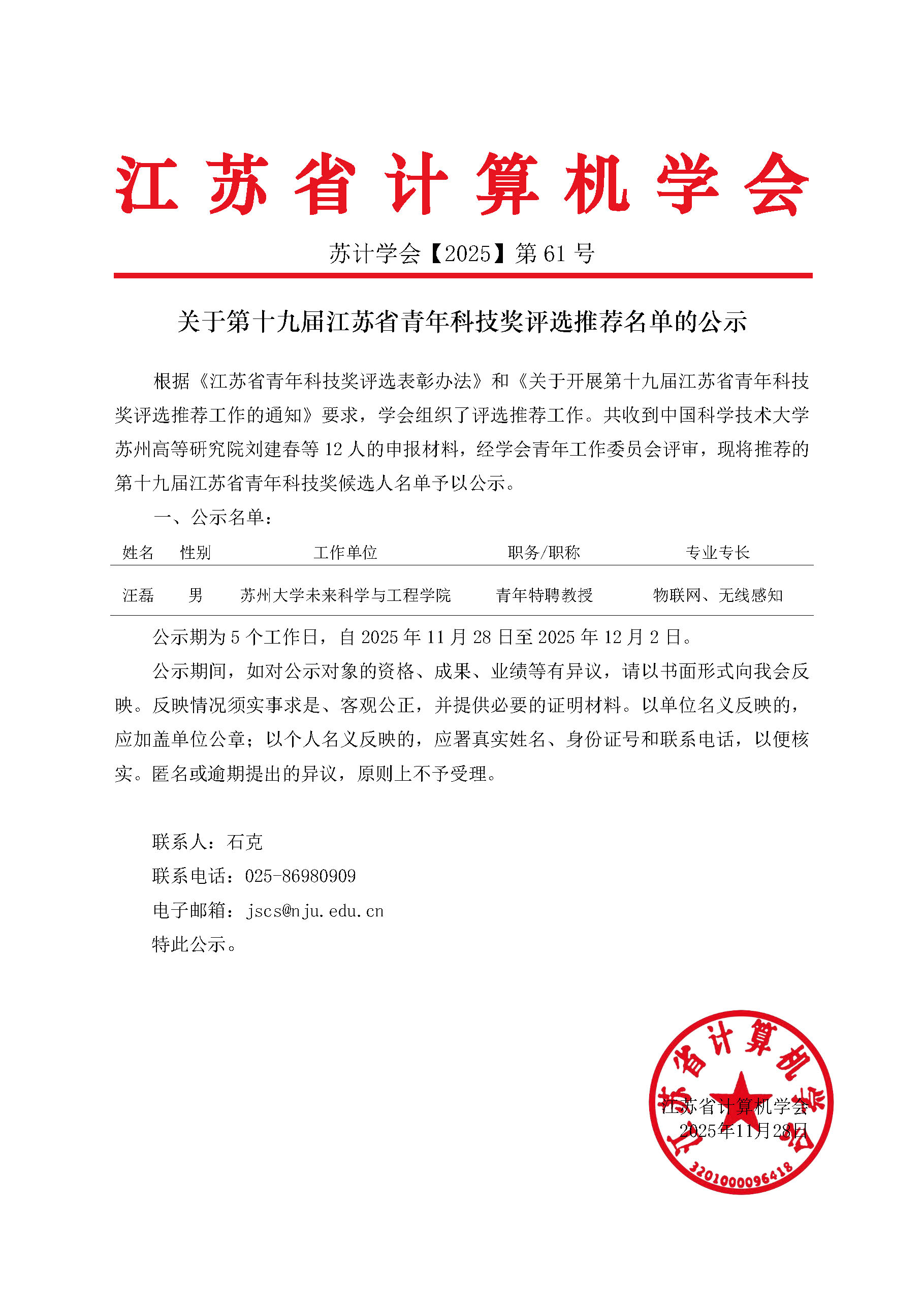 Copyright (c) 版权所有 江苏省计算机学会 南京网站建设公司 秘书处办公室 地址: 江苏省南京市仙林大道163号 邮编:210023 电话/传真:025-89680909 秘书处市内联络点 地址: 江苏省南京市汉口路22号 邮编:210093 电话/传真:025-86635622 电子邮箱:jscs@nju.edu.cn 网址:www.jscs.org.cn 技术支持:南京成旭通信息技术有限公司