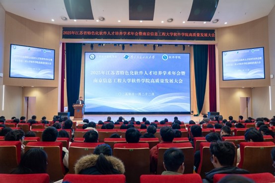 11月22日,2025年江苏省特色化软件人才培养学术年会暨南京信息工程大学软件学院高质量发展大会在南京信息工程大学临江楼D区报告厅顺利召开。江苏省计算机学会副秘书长聂长海,南京信息工程大学党委常委、副校长金自康,北京交通大学软件学院教授、示范性软件学院联盟理事长卢苇,金陵科技学院副校长张燕,北京百度网讯科技有限公司专家谭承轩、华为技术有限公司工业软件与人才生态发展总监徐玺等嘉宾出席会议。开幕式由软件学院院长刘琦主持。