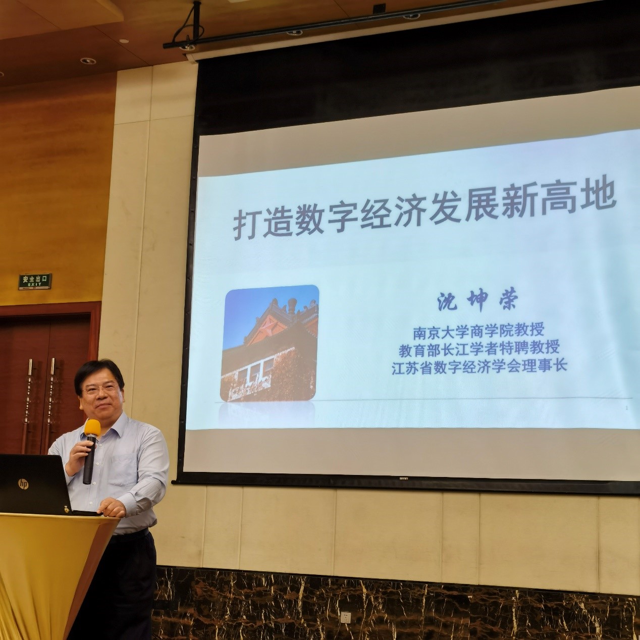 教育部长江学者特聘教授南京大学商学院沈坤荣教授作了题为“打造数字经济发展新高地”的报告,介绍江苏省的四大关注:产业数字化、数字产业、数字基础设施、数字治理等方面的理念和思考。