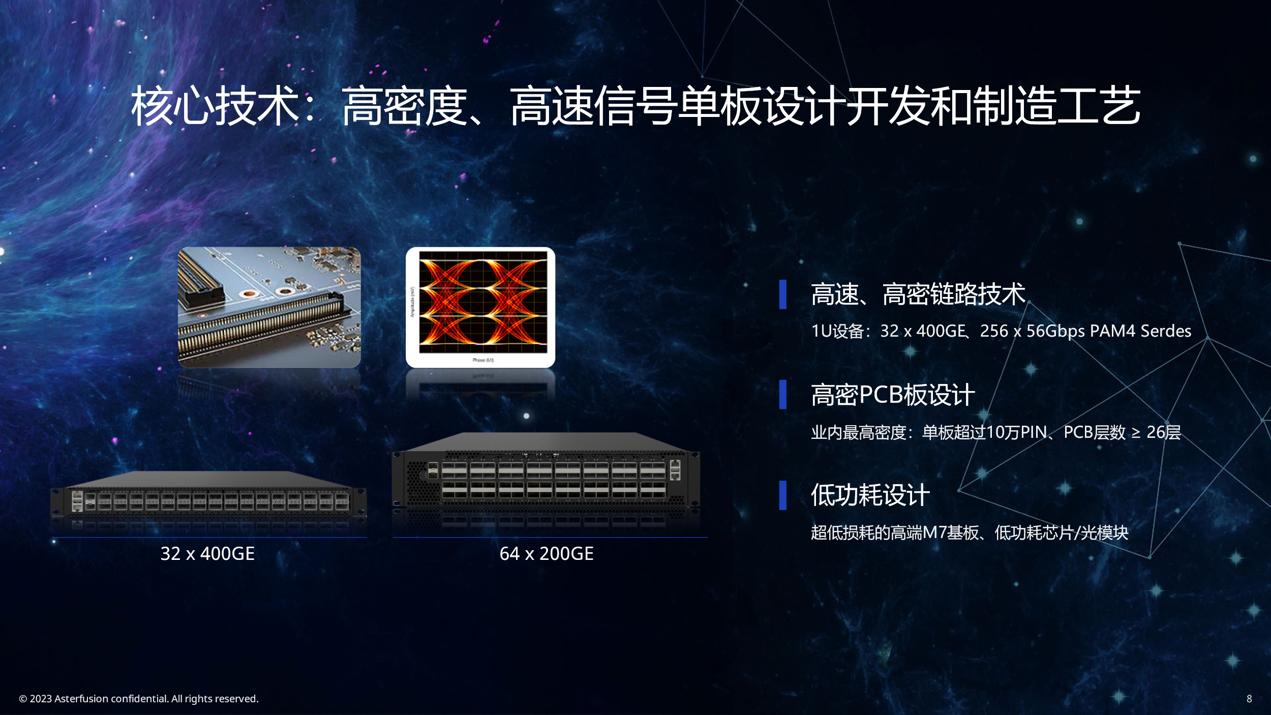 低功耗设计:采用超低损耗的高端M7基板,采用低功耗芯片和低功耗光模块(如QSFP-DD)。