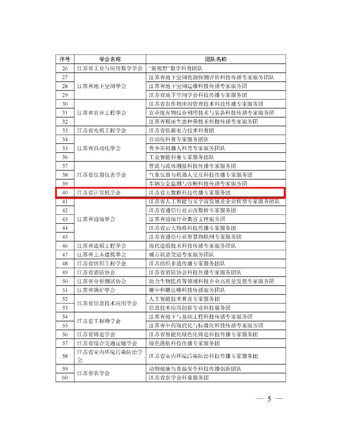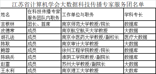 近日,江苏省科学技术协会下发了《关于公布江苏省第七批科技传播专家服务团、首席科技传播专家和省科普演讲专家的通知》,我学会的“江苏省大数据科技传播专家服务团”获聘“江苏省第七批科技传播专家服务团”。