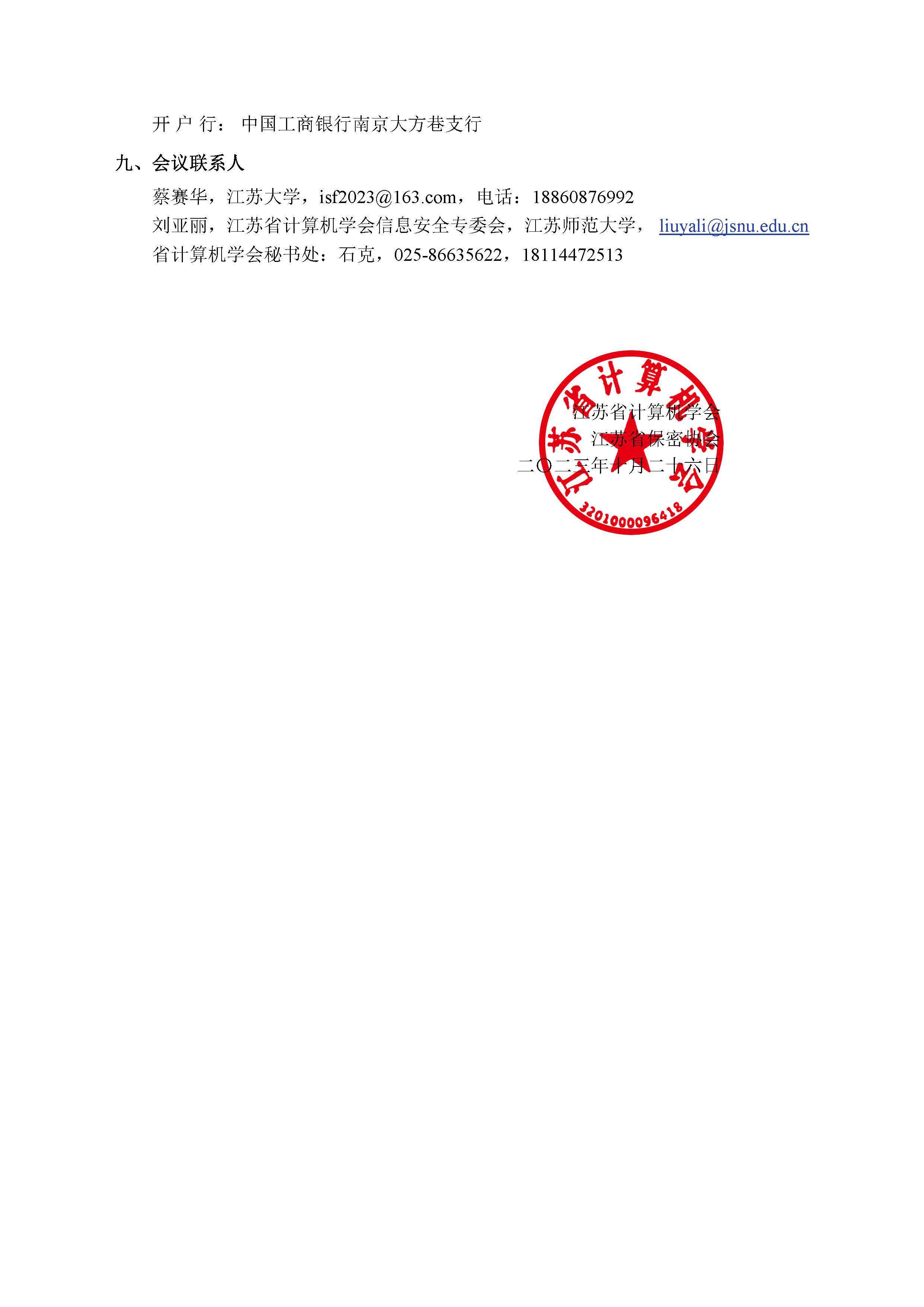 Copyright (c) 版权所有 江苏省计算机学会 南京网站建设公司 秘书处办公室 地址: 江苏省南京市仙林大道163号 邮编:210023 电话/传真:025-89680909 秘书处市内联络点 地址: 江苏省南京市汉口路22号 邮编:210093 电话/传真:025-86635622 电子邮箱:jscs@nju.edu.cn 网址:www.jscs.org.cn 技术支持:南京成旭通信息技术有限公司