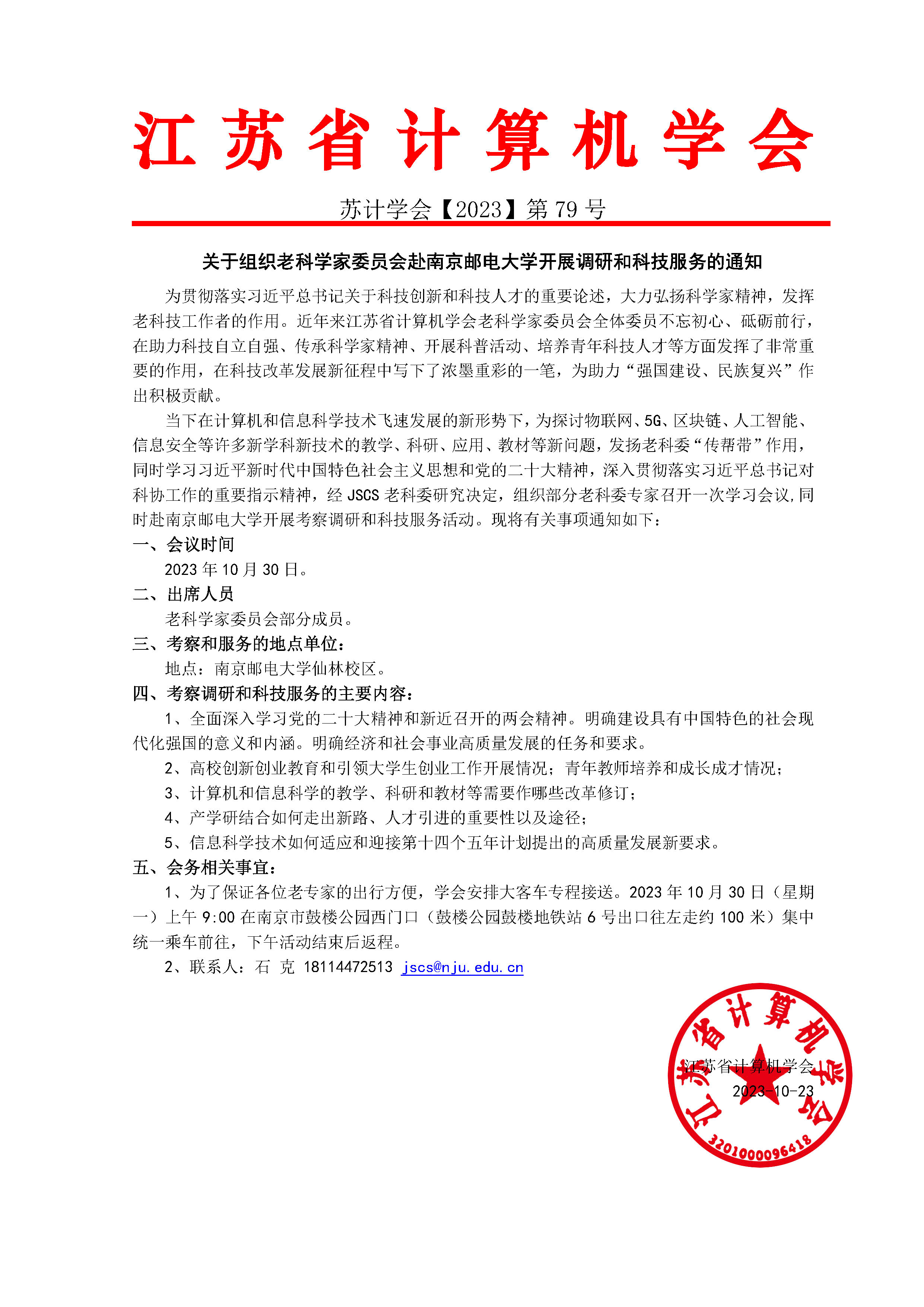 Copyright (c) 版权所有 江苏省计算机学会 南京网站建设公司 秘书处办公室 地址: 江苏省南京市仙林大道163号 邮编:210023 电话/传真:025-89680909 秘书处市内联络点 地址: 江苏省南京市汉口路22号 邮编:210093 电话/传真:025-86635622 电子邮箱:jscs@nju.edu.cn 网址:www.jscs.org.cn 技术支持:南京成旭通信息技术有限公司