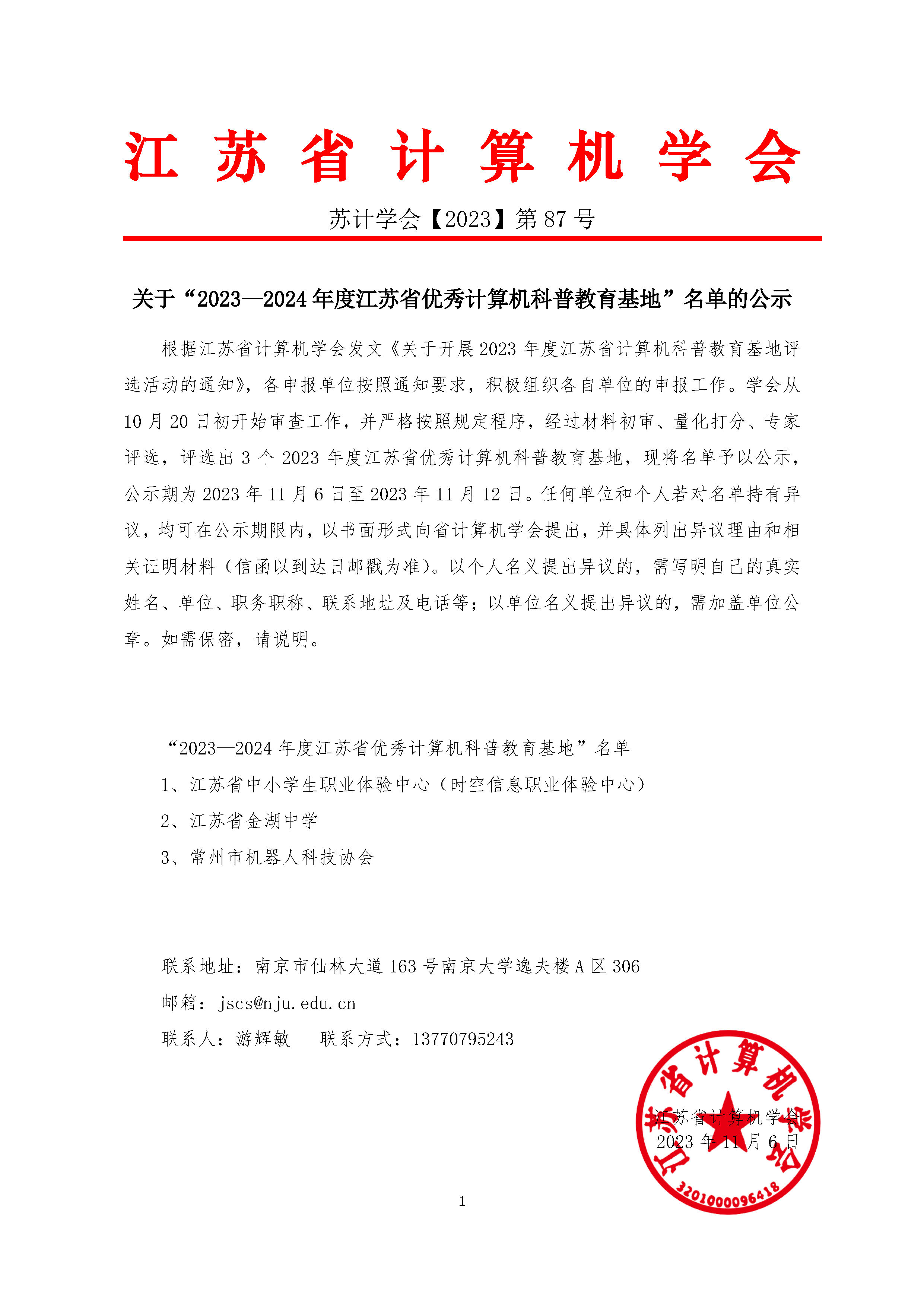 Copyright (c) 版权所有 江苏省计算机学会 南京网站建设公司 秘书处办公室 地址: 江苏省南京市仙林大道163号 邮编:210023 电话/传真:025-89680909 秘书处市内联络点 地址: 江苏省南京市汉口路22号 邮编:210093 电话/传真:025-86635622 电子邮箱:jscs@nju.edu.cn 网址:www.jscs.org.cn 技术支持:南京成旭通信息技术有限公司