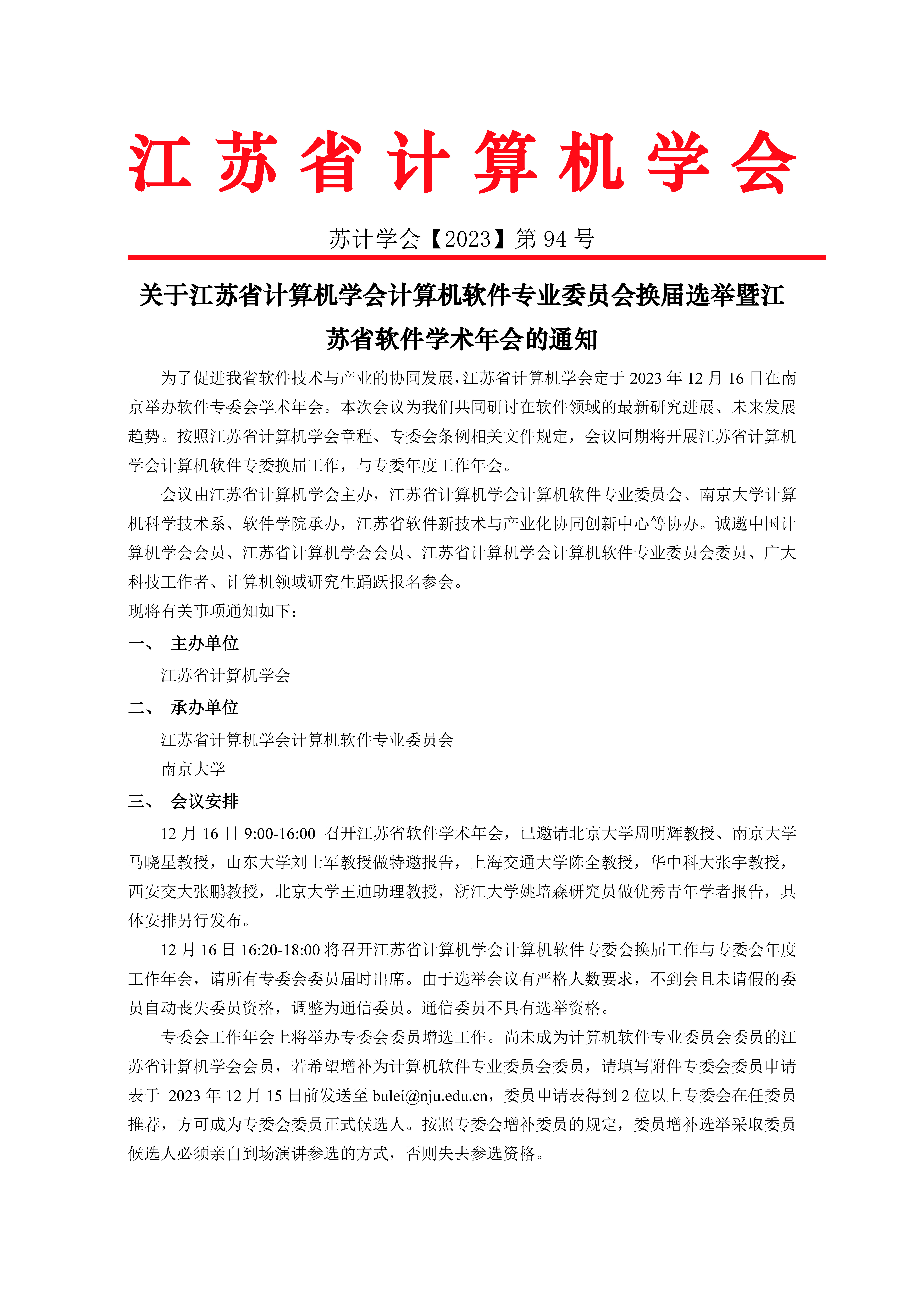 Copyright (c) 版权所有 江苏省计算机学会 南京网站建设公司 秘书处办公室 地址: 江苏省南京市仙林大道163号 邮编:210023 电话/传真:025-89680909 秘书处市内联络点 地址: 江苏省南京市汉口路22号 邮编:210093 电话/传真:025-86635622 电子邮箱:jscs@nju.edu.cn 网址:www.jscs.org.cn 技术支持:南京成旭通信息技术有限公司