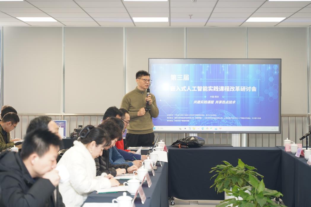 1月6日,第三届“嵌入式人工智能实践课程改革研讨会”在南京集成电路培训基地成功召开。本届研讨会由江苏省计算机学会嵌入式系统与物联网专委会、电子工业出版社主办,南京优奈信息科技有限公司(苏嵌教育)、江苏润和软件股份有限公司、上海市电子学会RISC-V产教融合专委会、杭州硬十科技共同承办,数字制造产教融合联盟协办。本届研讨会由苏嵌教育总经理林新华主持。