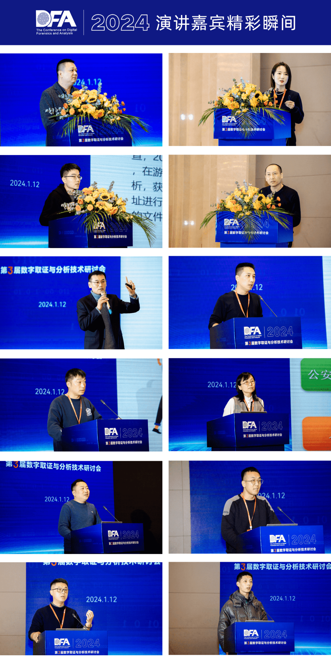 会议特别邀请了12位经验丰富的一线干警和专家,围绕涉网犯罪数字取证与分析技术的最新发展和应用作主题分享,内容涵盖江苏打击电信网络诈骗犯罪新动向、电子物证智能数据应用支持跨境涉网案件侦办技战法、涉网犯罪中短信引流的演变、APK分析技术在实际案例中的应用、电子数据取证在零口供黑客案件中的应用等方面。