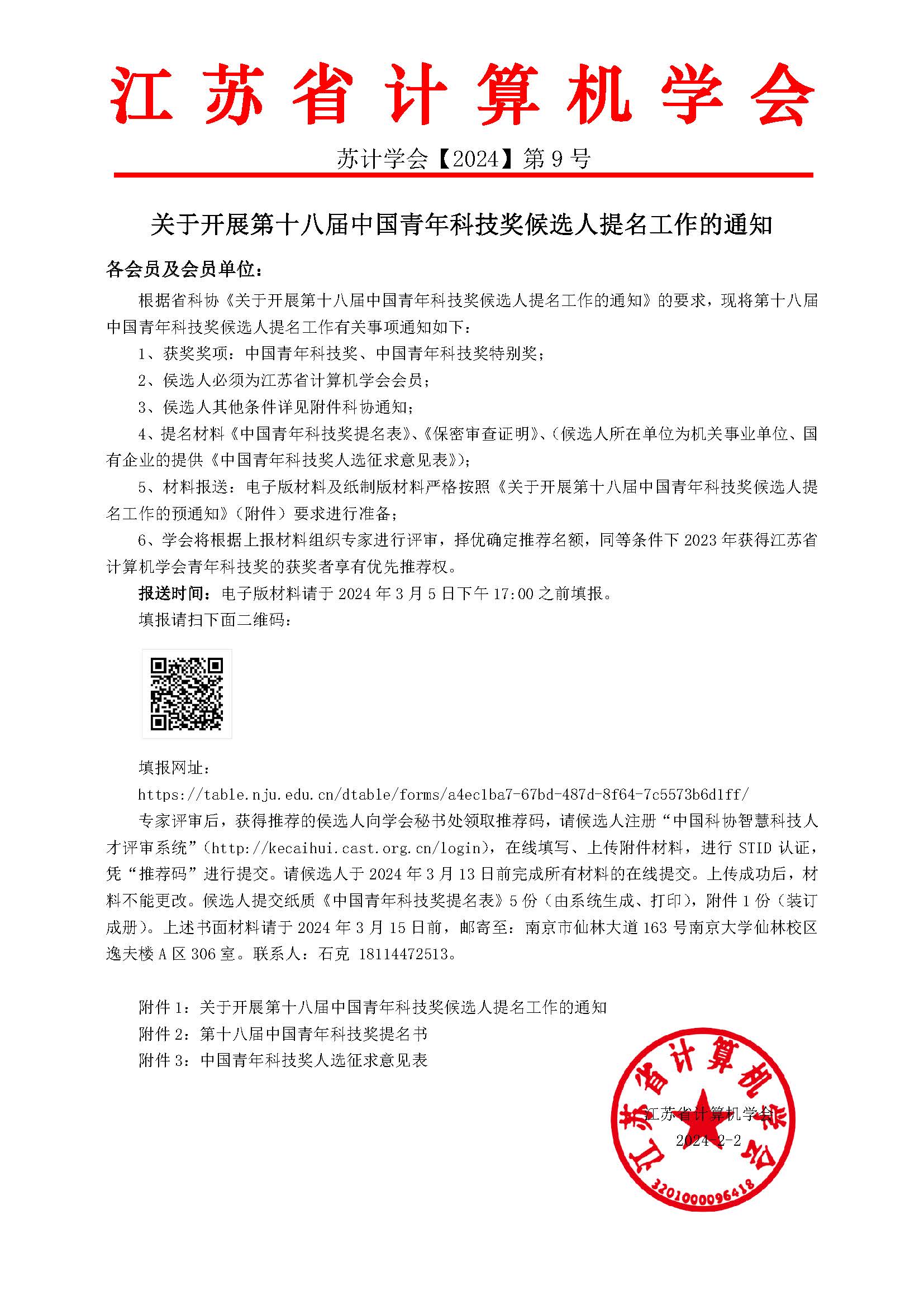 附件1:关于开展第十八届中国青年科技奖候选人提名工作的预通知