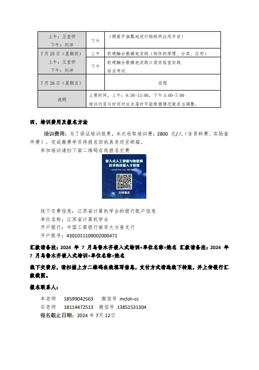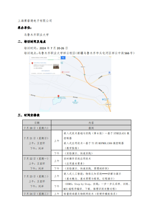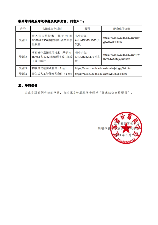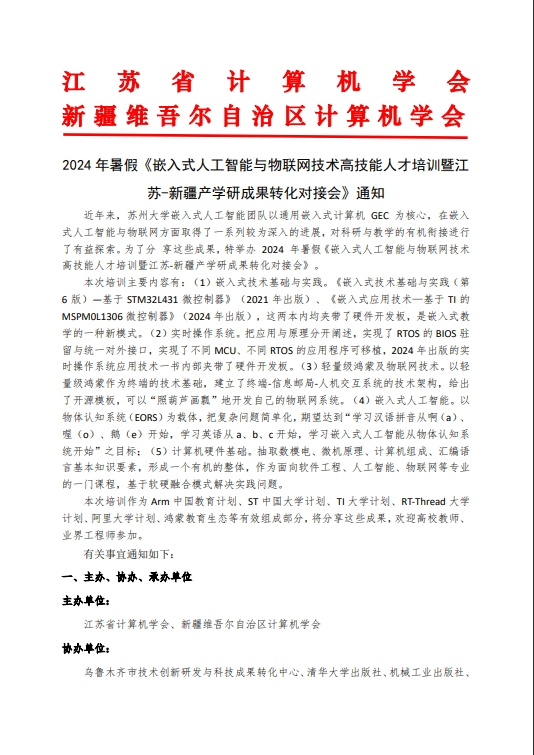 2024年暑假《嵌入式人工智能与物联网技术高技能人才培训暨江苏-新疆产学研成果转化对接会》通知