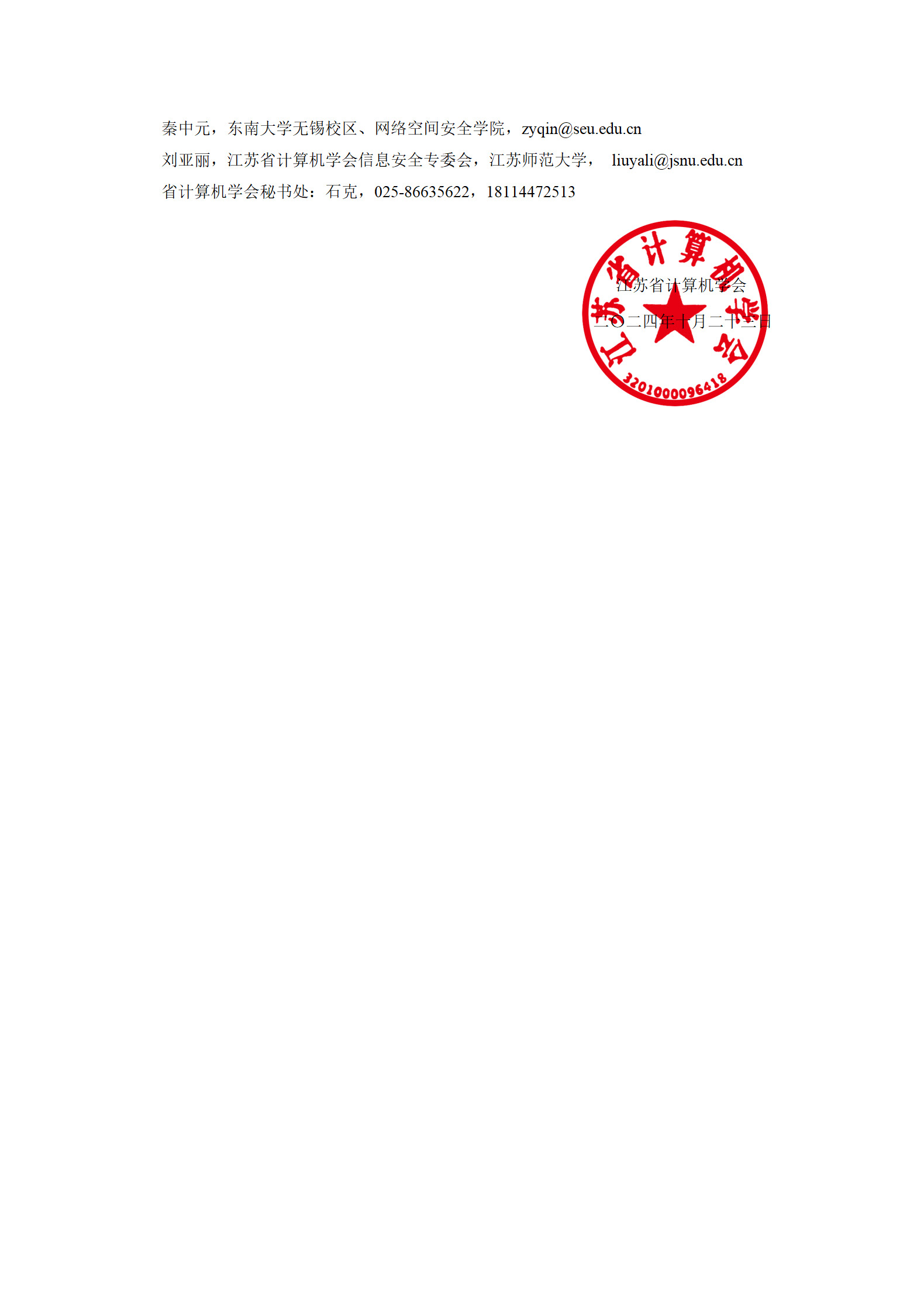 Copyright (c) 版权所有 江苏省计算机学会 南京网站建设公司 秘书处办公室 地址: 江苏省南京市仙林大道163号 邮编:210023 电话/传真:025-89680909 秘书处市内联络点 地址: 江苏省南京市汉口路22号 邮编:210093 电话/传真:025-86635622 电子邮箱:jscs@nju.edu.cn 网址:www.jscs.org.cn 技术支持:南京成旭通信息技术有限公司