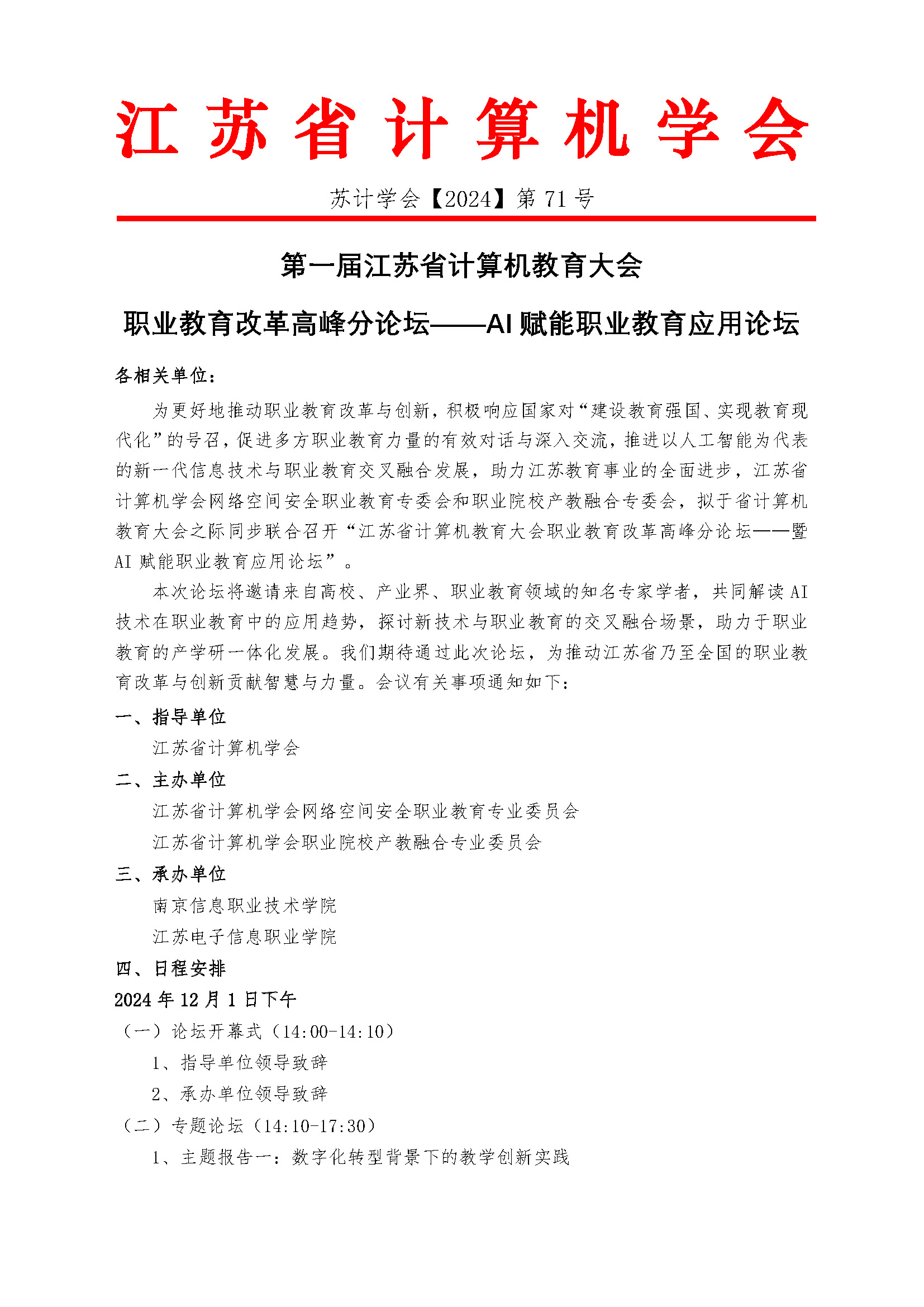附件:第一届江苏省计算机教育大会-职业教育改革高峰分论坛——AI赋能职业教育应用论坛