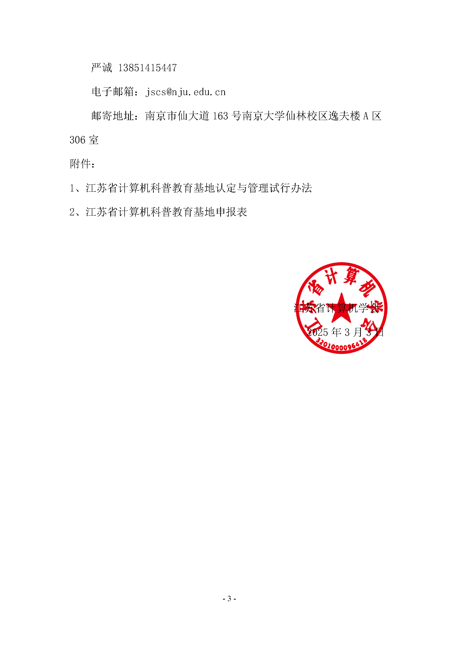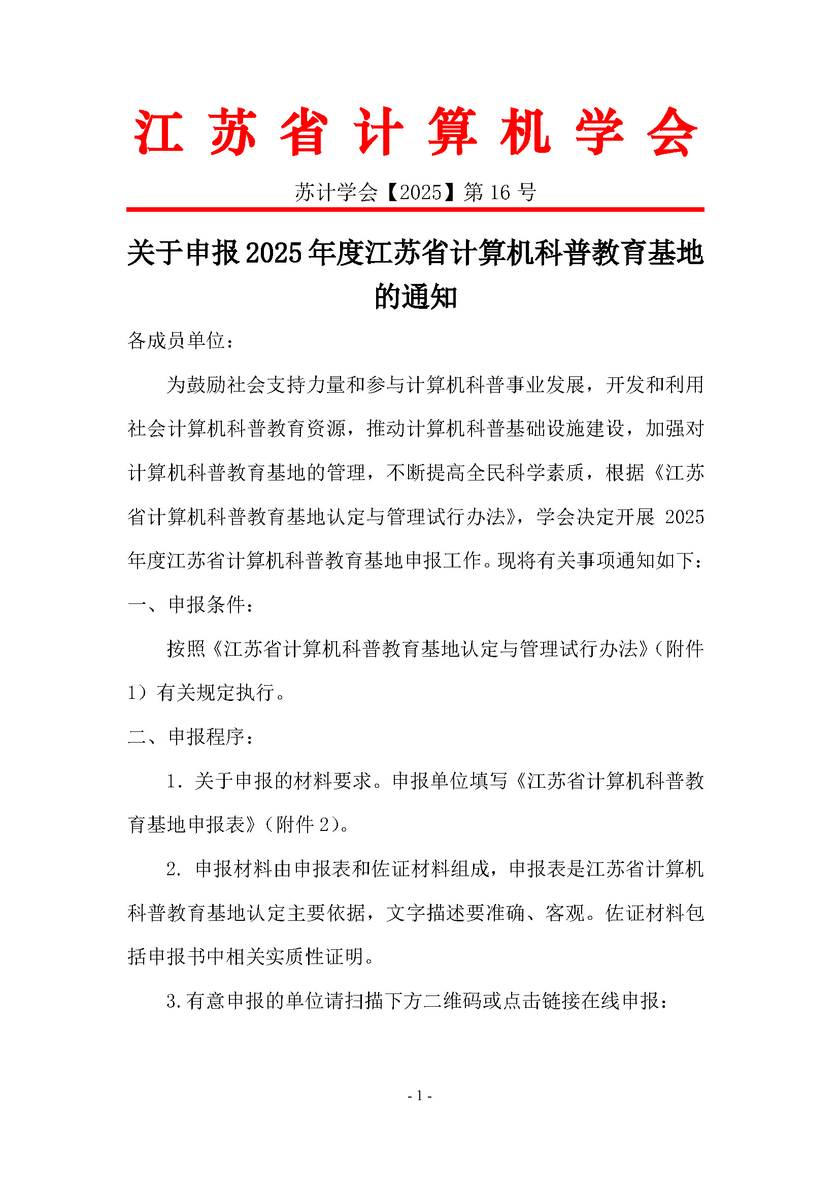 关于申报2025年度江苏省计算机科普教育基地的通知