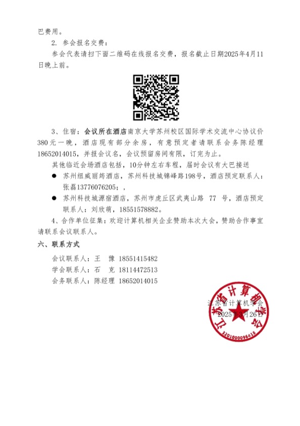 Copyright (c) 版权所有 江苏省计算机学会 南京网站建设公司 秘书处办公室 地址: 江苏省南京市仙林大道163号 邮编:210023 电话/传真:025-89680909 秘书处市内联络点 地址: 江苏省南京市汉口路22号 邮编:210093 电话/传真:025-86635622 电子邮箱:jscs@nju.edu.cn 网址:www.jscs.org.cn 技术支持:南京成旭通信息技术有限公司