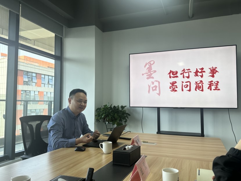 江苏省计算机学会积极发挥科技服务职能,4月14日下午,江苏省计算机学会秘书长金莹教授应邀前往墨问科技开展交流活动,秘书处吴春雪陪同。此次交流旨在加强学会与企业间的联系,共同探索人工智能与智能机器人领域的前沿技术突破及未来发展趋势。墨问科技总经理宋辉、销售经理洪业坦热情接待了金莹秘书长一行,双方随即展开了一场富有深度与前瞻性的探讨。