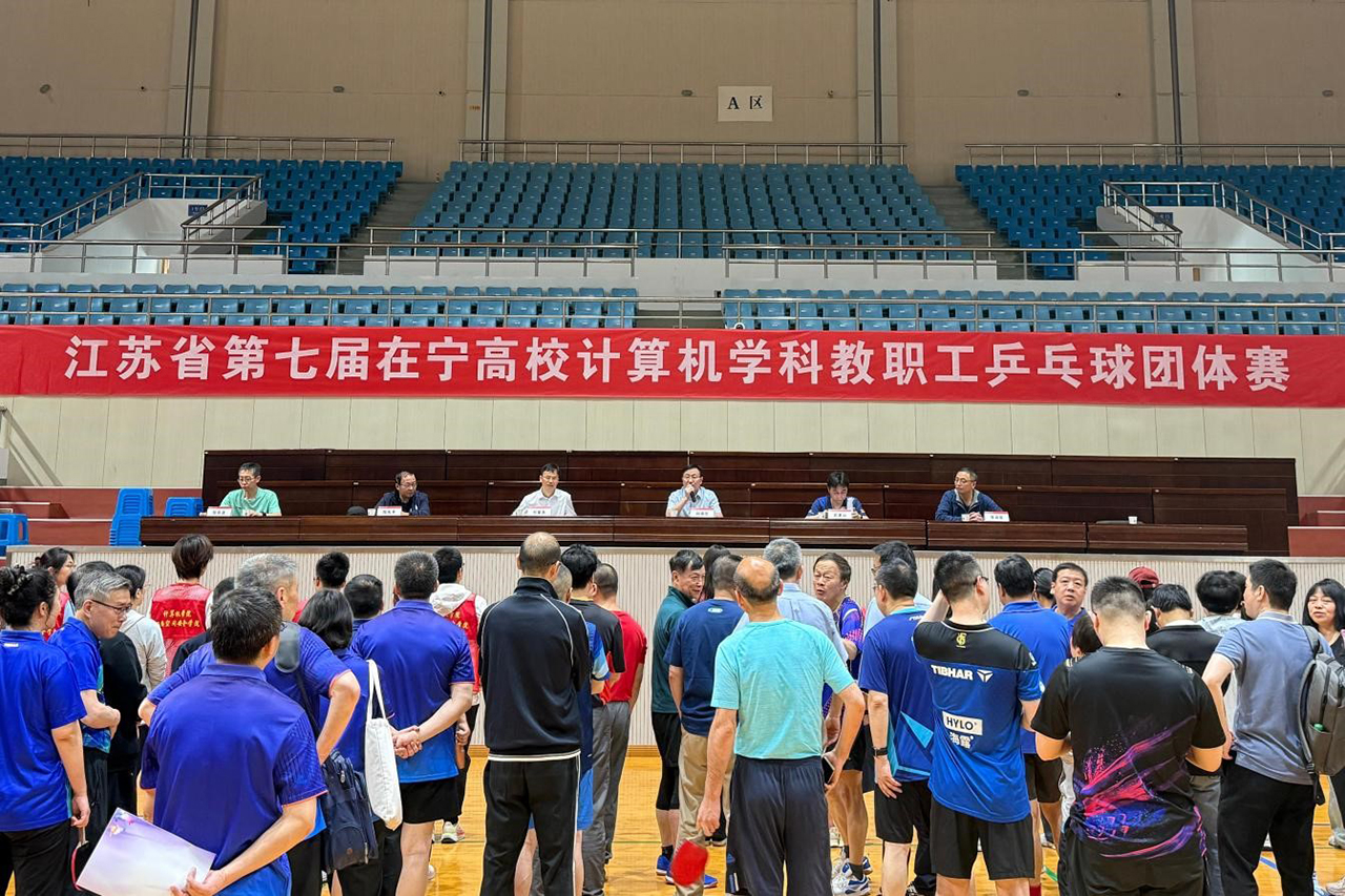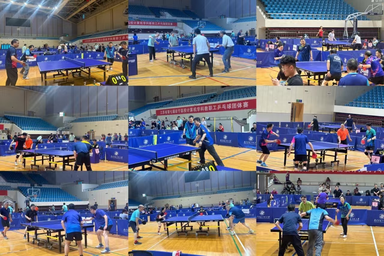 4月19日,江苏省第七届在宁高校计算机学科教职工乒乓球团体赛在南京信息工程大学举行。本届赛事由江苏省计算机学会主办,南京信息工程大学计算机学院、网络空间安全学院承办,来自在宁高校的计算机学科院系的13支代表队以及1支省外联队,共14支参赛队伍的110余名教师参加了比赛。南京信息工程大学校党委副书记闵锦忠教授;江苏省计算机学会副理事长、南京大学计算机学院党委书记武港山教授;赛事组委会主任、南京大学陶先平教授;赛事组委会委员、南京理工大学张功萱教授;赛事组委会委员、南京信息工程大学计算机学院院长付章杰教授出席开幕式。开幕式由南京信息工程大学计算机学院党委书记张京波主持,江苏省计算机学会副理事长武港山教授致开幕辞,南京信息工程大学党委副书记闵锦忠教授致欢迎辞并宣布比赛开幕。