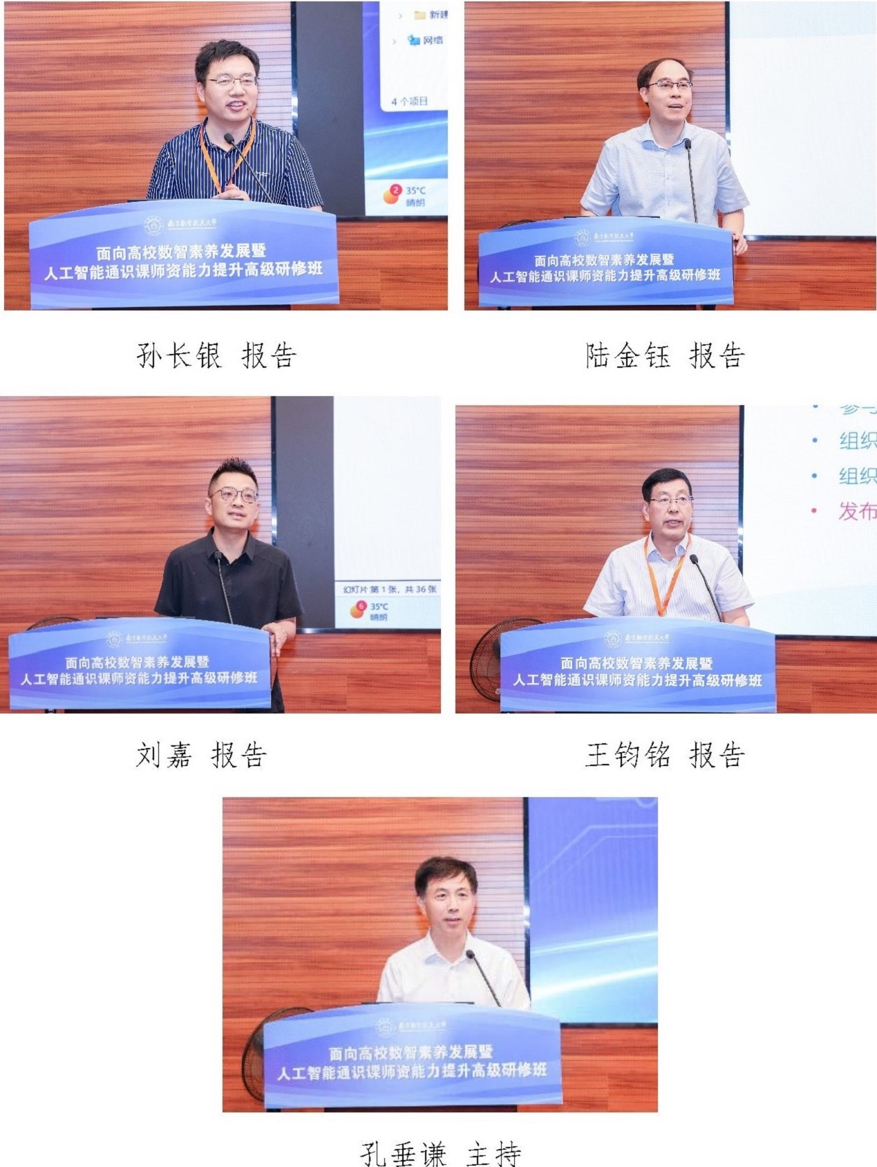 7月4日下午,会议邀请了南京信息职业技术学院副校长杜庆波教授,江苏师范大学党委委员、人事处处长杨现民教授,南京航空航天大学人工智能学院副院长朱旗教授,扬州大学信息工程学院(人工智能学院)院长孙小兵教授分别作主题报告,由南京理工大学教务处处长姚文进主持。
