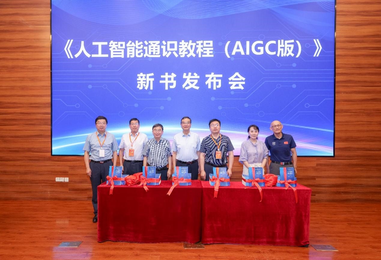 会上,《人工智能通识教程(AIGC版)》举行新书发布会。《人工智能通识教程(AIGC版)》由南京信息职业技术学院校长田敏教授、人工智能学院院长何淼教授与江苏电子信息职业学院党委委员、教务处处长于正永教授担任主编,由上海交通大学出版社正式出版。教材采用“认知基础—应用实践—开发实战”三层递进结构,贯穿“无码化、工具化、场景化”理念,培养读者人工智能核心能力。邓志良秘书长就教材进行了简要介绍,丁晓昌会长、施大宁副校长、孙长银校长、王钧铭主任、田敏校长、陈松灿理事长及金莹秘书长共同为新书发布揭幕。