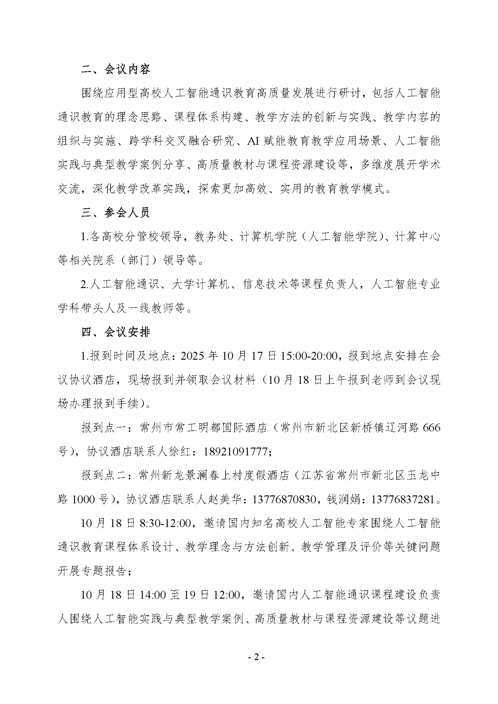 关于举办第二届应用型高校人工智能通识教育教学改革与创新研讨会的通知