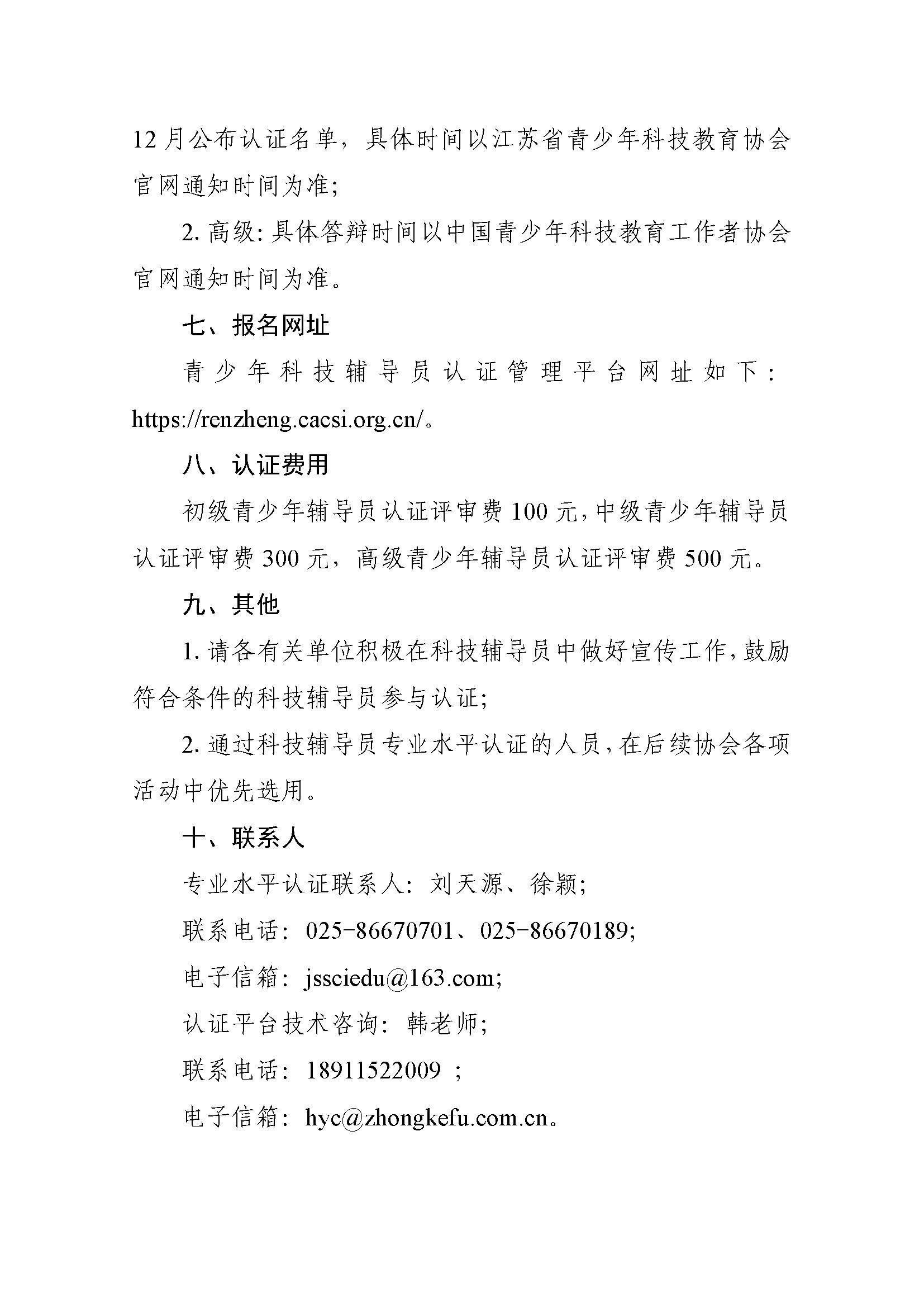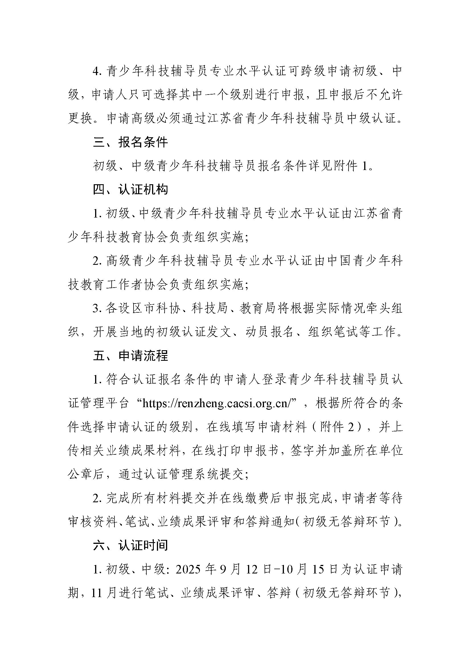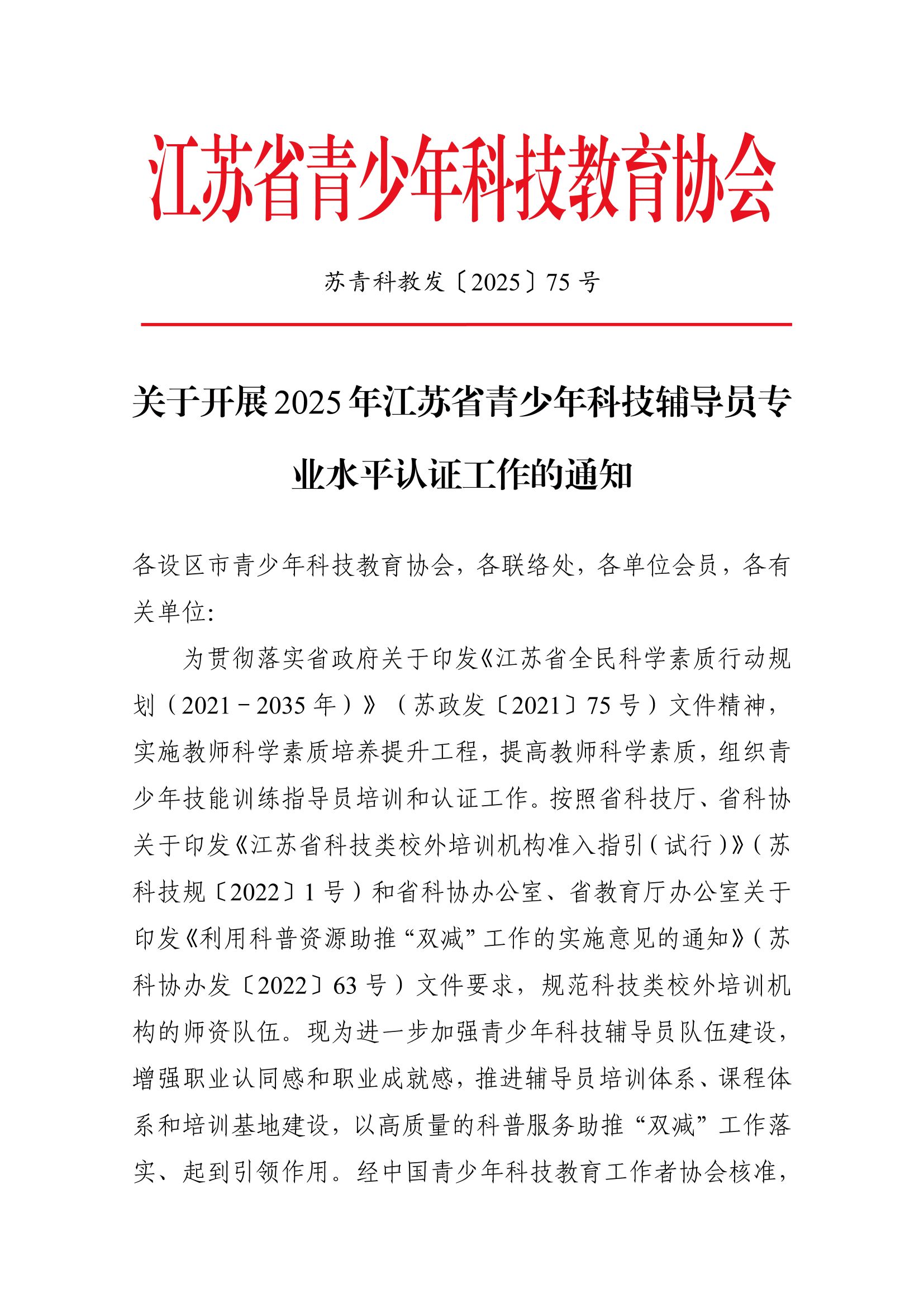 关于开展2025年江苏省青少年科技辅导员专业水平认证工作的通知