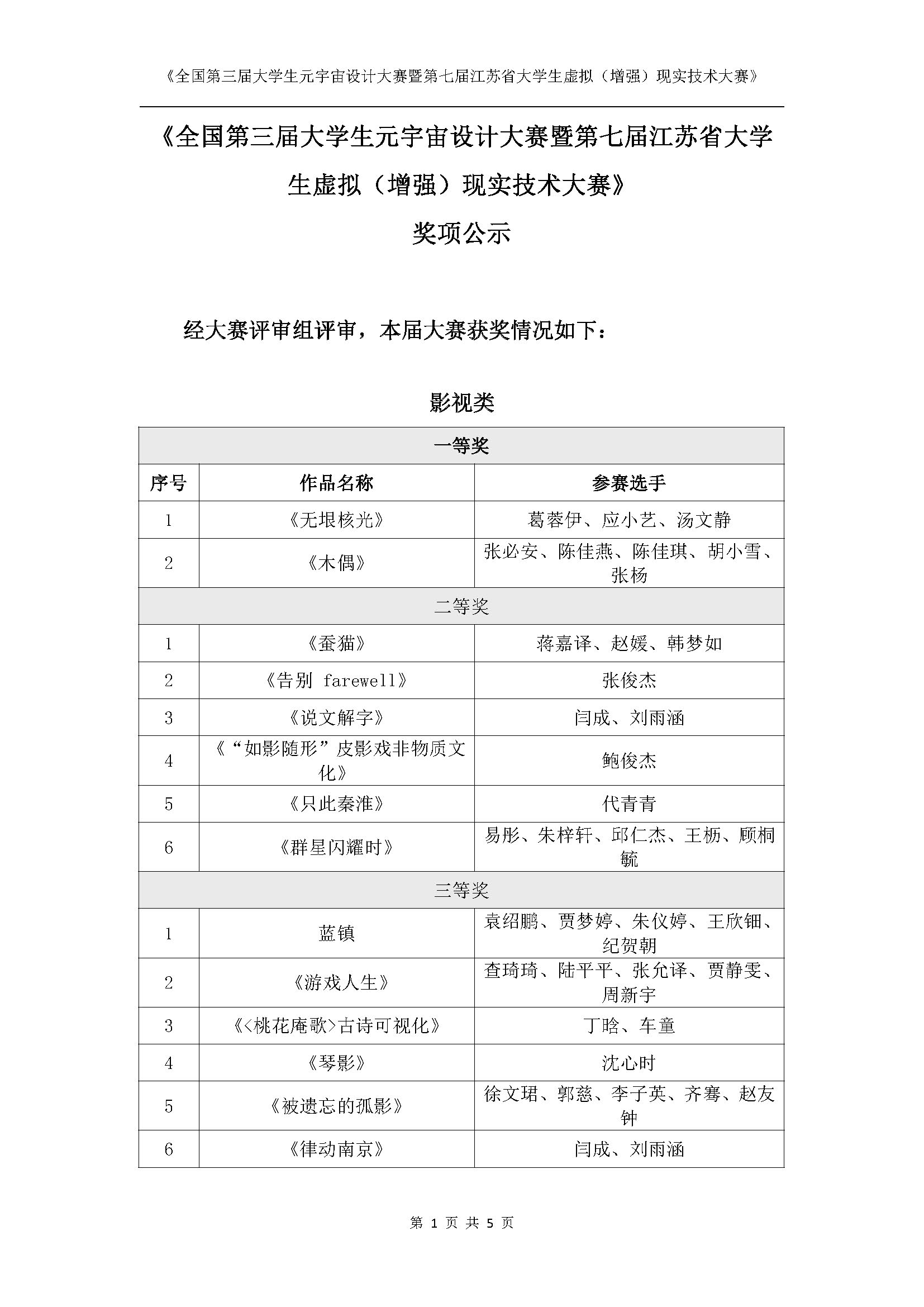 全国第三届大学生元宇宙设计大赛暨第七届江苏省大学生虚拟(增强)现实技术大赛——奖项公示