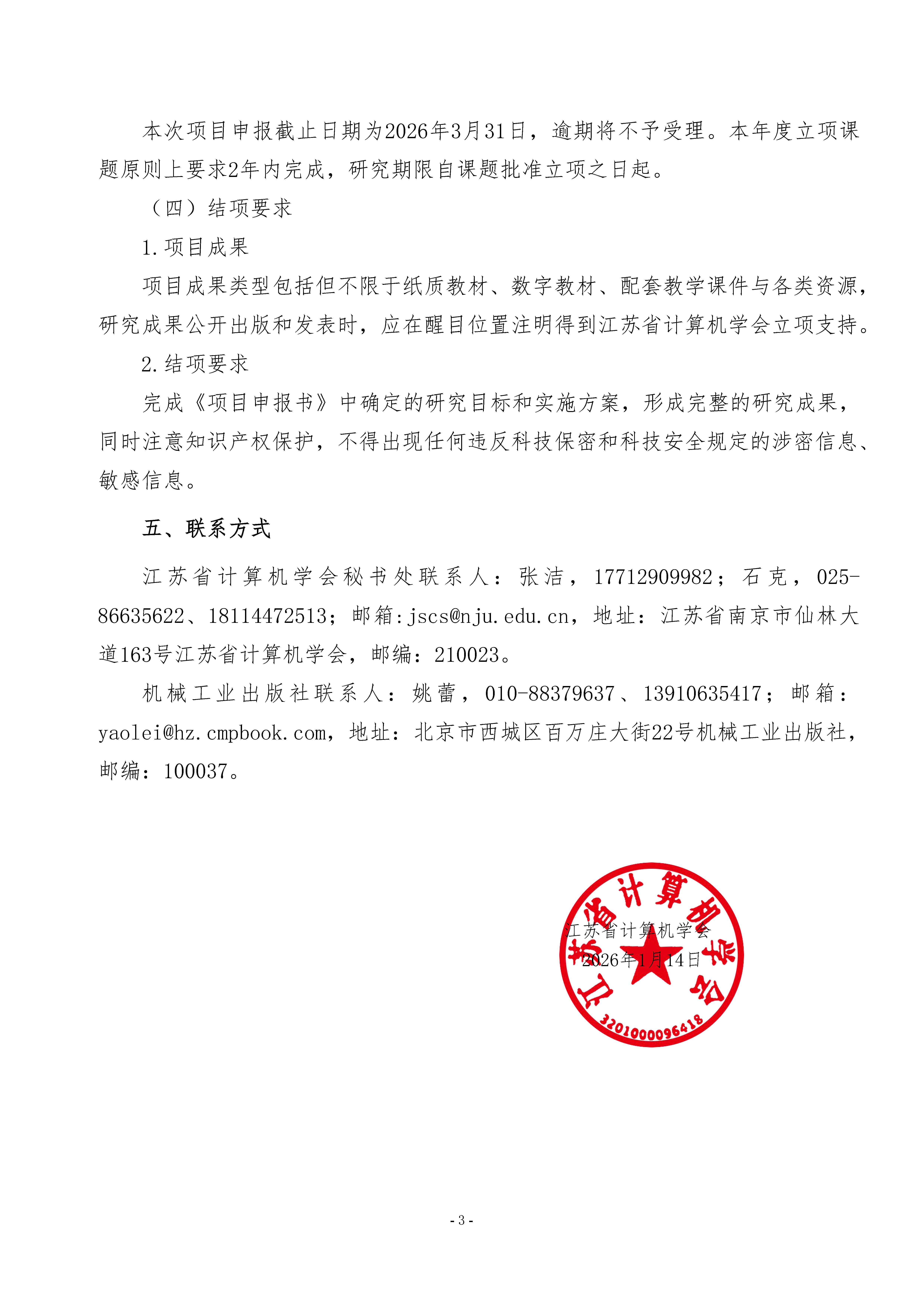 江苏省计算机学会关于组织开展2026年机械工业出版社教学类专项资金项目申报工作的通知
