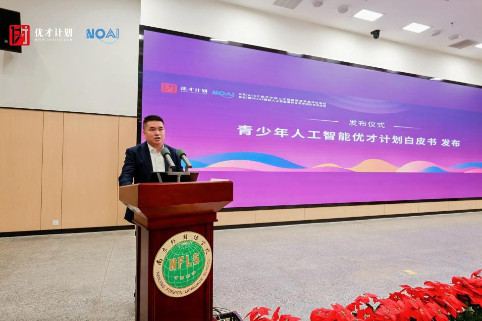 活动中,“青少年人工智能优才计划白皮书”的启动发布尤为引人关注。AIUC优才计划认证与评价委员会主任、NOAI国际人工智能奥赛江苏省组委会主任季海涛详细解读了白皮书的三大核心维度:覆盖全省13个地市高品质高中的基地校、来自C9高校及中学的专家团队,以及最重要的——100名被纳入跟踪培养体系的拔尖学生。