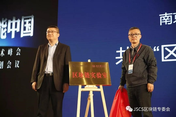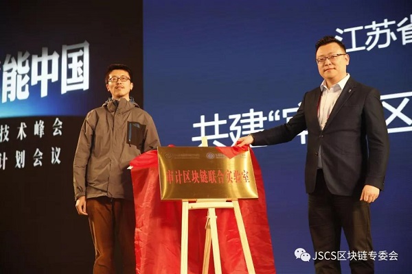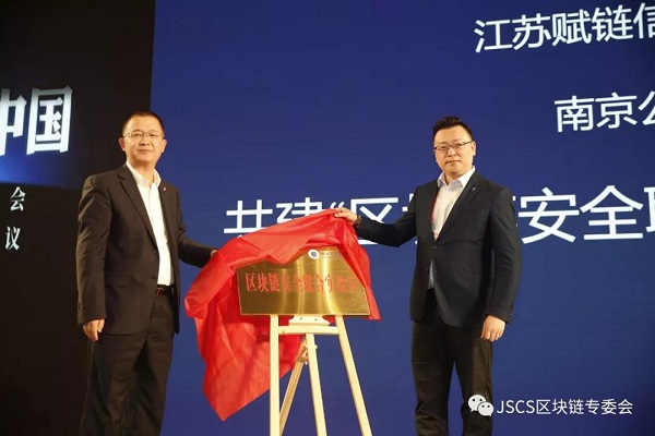 会上,大会承办方之一—江苏赋链信息技术研究院分别与南京公安研究院、南京理工大学知识产权学院、江苏审计信息工程重点实验室三家单位,进行“区块链共建实验室”签约及揭牌仪式。