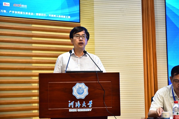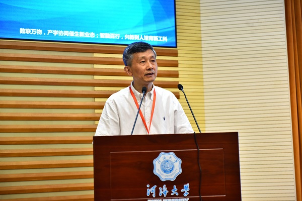 河海大学许峰副校长代表承办单位致欢迎辞,他首先对各位专家、代表的到来表示了热烈的欢迎,并指出迈入 21 世纪,以物联网、云计算、大数据、人工智能为代表的新一代信息技术加速突破应用,开启了一场全球性、全方位的信息革命。高校作为人才培养、知识创新的摇篮,应该以本届大会为契机,紧密对接国家重要战略和行业重大需求,进一步深化教育教学改革,创新人才培养模式,充分发挥科研平台优势,为江苏省以及国家信息技术领域贡献力量。