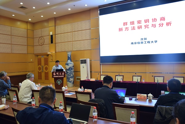 南京信息工程大学教授沈剑作《群组密钥交换的新方法研究与分析》的主题报告