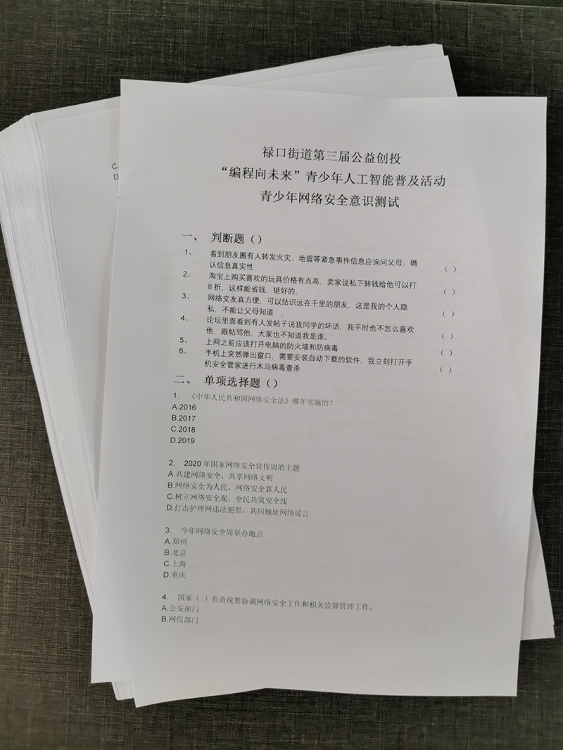 在网络安全知识科普讲座结束后,为了让小朋友们能更深入直观的了解更多知识,同时检验听讲座的成果,现场小测验开始啦!