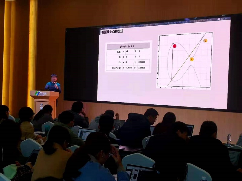 (蒋勇博士在讲解区块链技术中应用的密码算法)