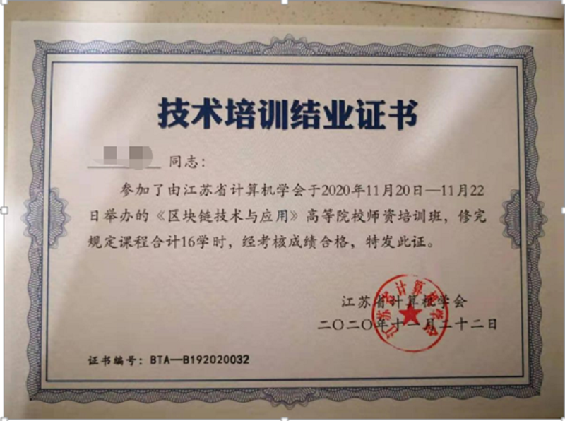 本次培训是《区块链技术与应用》高等院校师资培训的第一期,经过考核,共有28名教师获得了本次培训的结业证书。