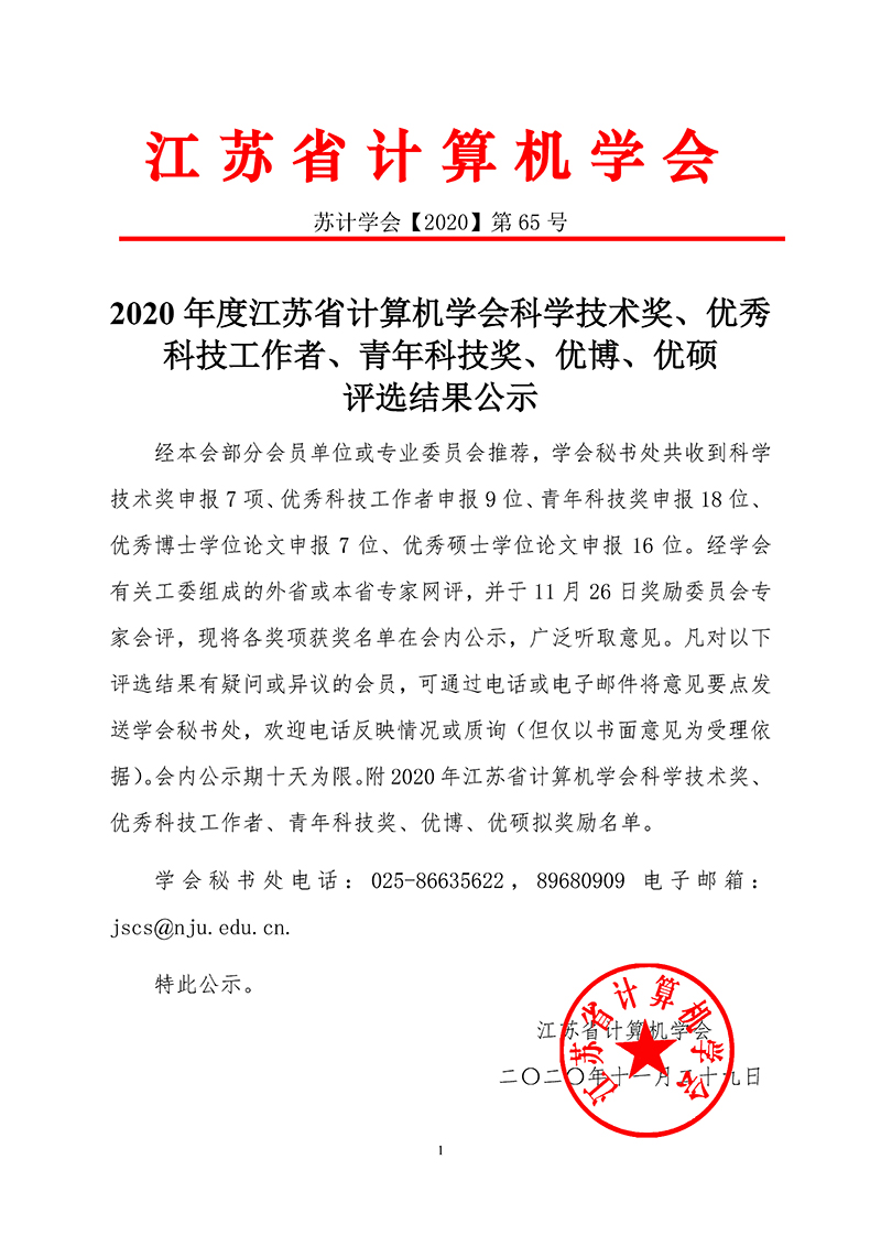Copyright (c) 版权所有 江苏省计算机学会 南京网站建设公司 秘书处办公室 地址: 江苏省南京市仙林大道163号 邮编:210023 电话/传真:025-89680909 秘书处市内联络点 地址: 江苏省南京市汉口路22号 邮编:210093 电话/传真:025-86635622 电子邮箱:jscs@nju.edu.cn 网址:www.jscs.org.cn 技术支持:南京成旭通信息技术有限公司