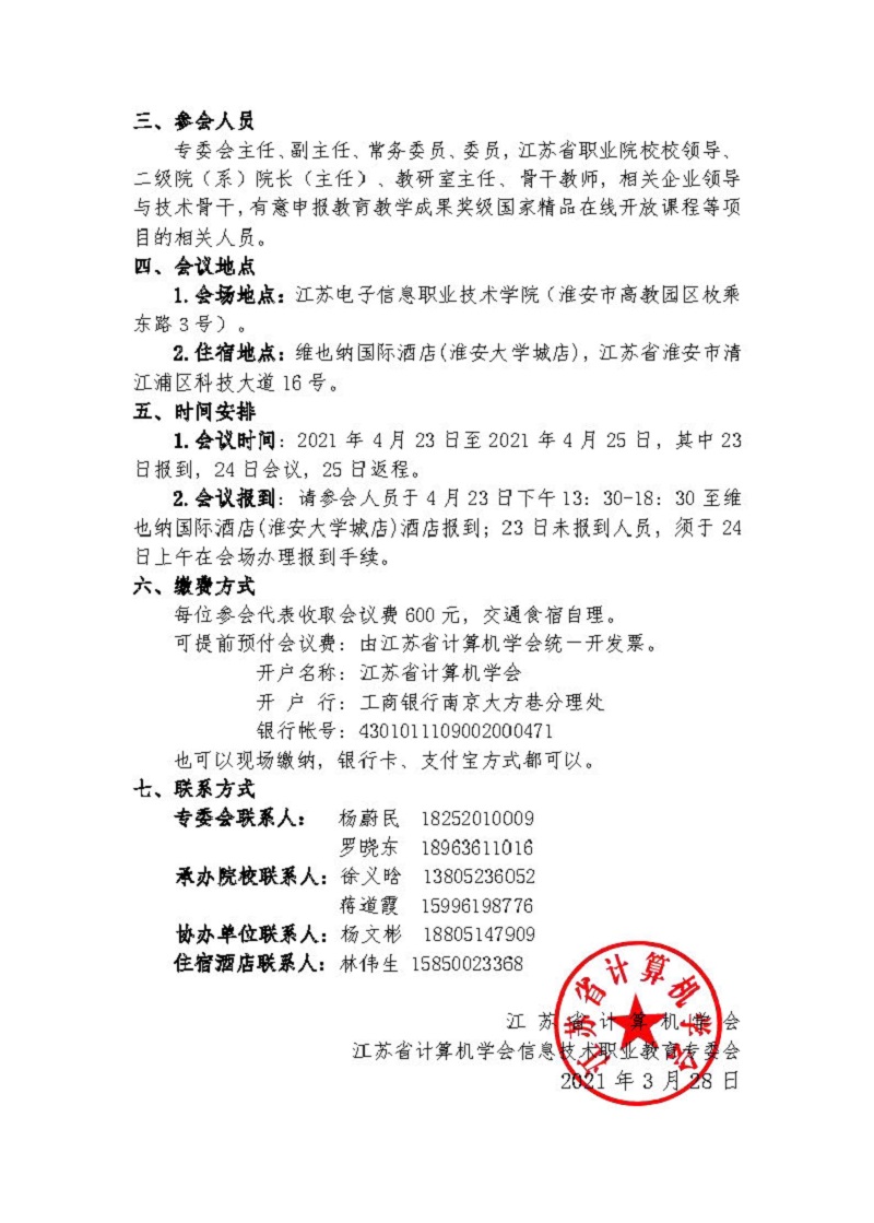 附件:江苏省计算机学会信息技术职业教育专委会2021年学术年会回执表
