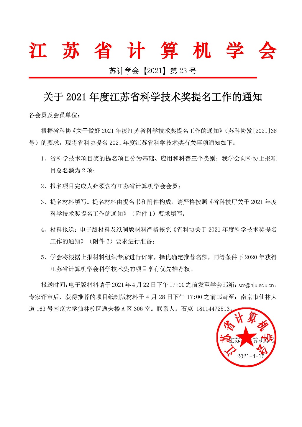 附件1:省科技厅关于2021年度江苏省科学技术奖提名工作的通知