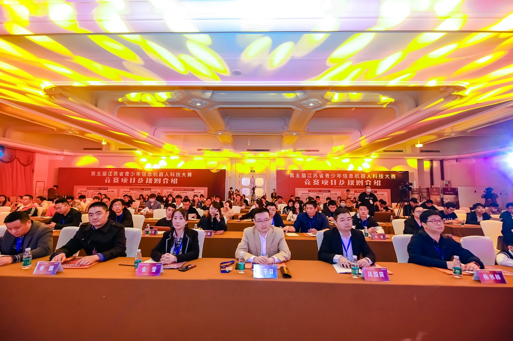 发布会上江苏省青少年信息机器人科技大赛组委会负责人汪国庆先生介绍了今年第五届江苏省青少年信息机器人科技大赛的组织情况,特别值得一提的是,由于该项赛事受到广泛欢迎,因此今年的比赛首次引入“城市赛”的概念,旨在让更多的科技少年们在自己的城市就能参与竞技和交流,此番创新与变革也得到了各地相关单位和机构的大力支持,今年将开设南京赛区、常州赛区、苏州赛区、盐城赛区、昆山赛区、扬州赛区、淮安赛区等城市选拔赛及白名单赛事交流观摩活动,为促进青少年科学素养全面提升,培养学生计算机思维,人工智能技术,推动我省青少年科技创新活动与机器人竞赛活动的深入开展,培养科技创新后备人才,丰富学校综合评价体系贡献力量。