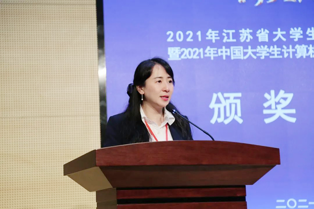 江苏省教育厅高教处一级调研员蔡华处长、大赛承办单位江苏科技大学副校长嵇春艳教授、大赛赞助单位新大陆时代教育科技有限公司江苏子公司总经理林丽明、大赛主办单位江苏省计算机学会秘书长金莹教授分别为闭幕式致辞发言。