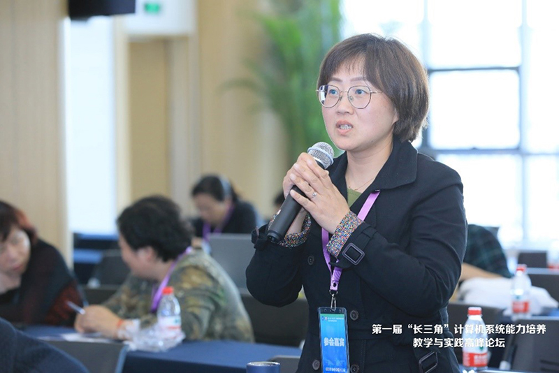 主题报告结束后,系统结构专委会主任南京理工大学张功萱教授主持了“高峰论坛Panel”,邀请依元素公司夏良波总经理、机械出版社温莉芳常务副总经理和有关高校教授们一起,围绕着“不同类型高校计算机系统能力培养目标有何不同、如何再实践教学中加强系统能力的培养、如何通过强化系统能力培养深化与产业发展需求融合来助推信创人才培养”等三个方面问题开展研讨,并回答了安徽工业大学陈业斌教授、南通大学顾晖副教授、淮阴工学院孙成富副教授等参会人员的问题,交流观点和看法。