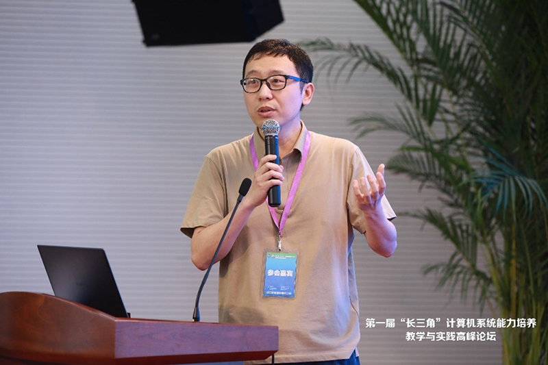 东南大学杨全胜副教授作了“重构计算机系统能力课程体系,培养掌握自主核心技术的创新人才”报告,介绍了东南大学计算机科学与工程学院在原来“纵横贯通”的5+3实践课程体系下进一步深化改革,融入新的技术元素和新的人才培养理念。