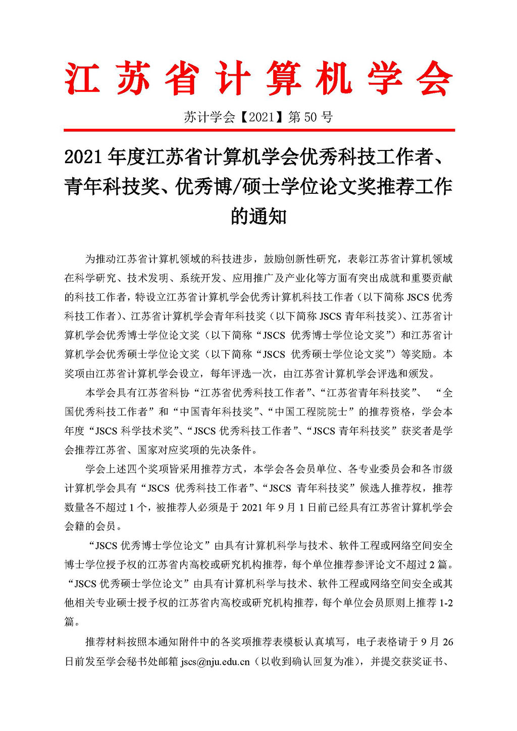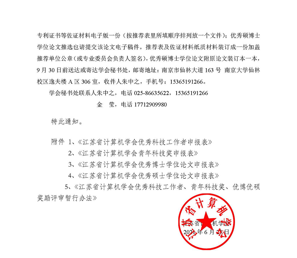 附件一:江苏省计算机学会优秀科技工作者、青年科技奖、优博优硕奖励评审暂行办法
