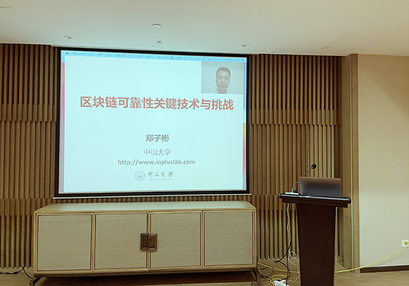 受疫情影响,来自中山大学的郑子彬教授未能前来现场,通过视频方式分享主题报告“区块链可靠性关键技术与挑战”,报告从软件可靠性与区块链可靠性的对比出发,介绍了区块链可靠性的研究背景和相关研究,并从节点及共识可靠性、智能合约的可靠性、交易网络的可靠性等方面进行了宣讲。
