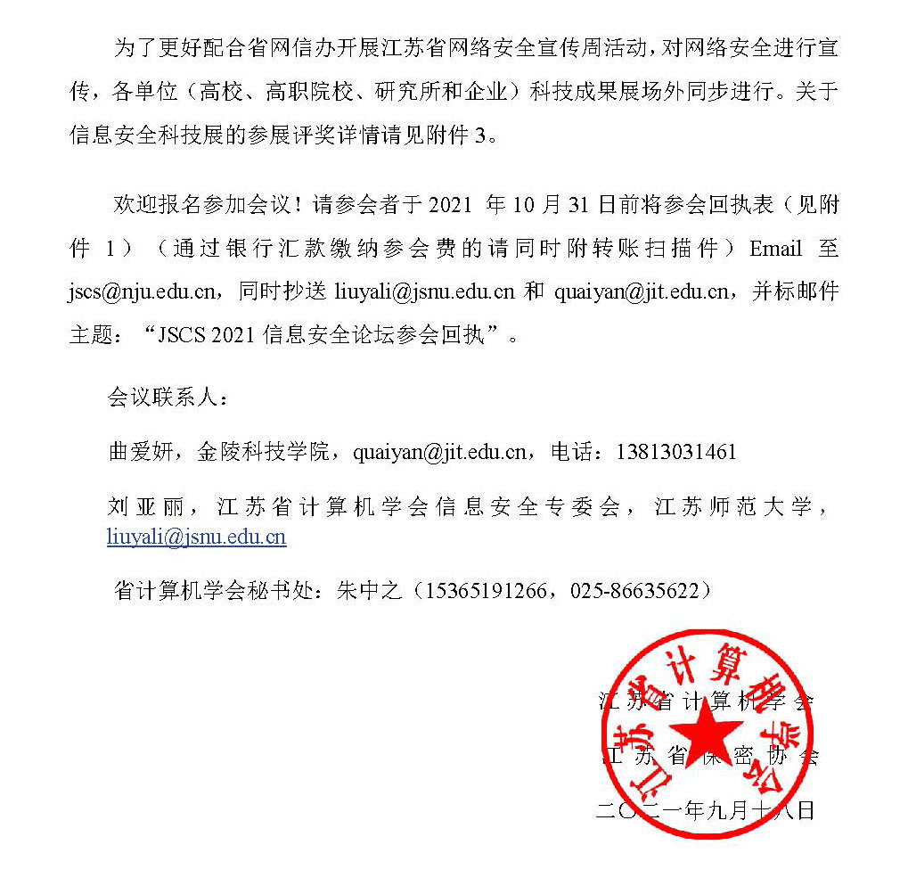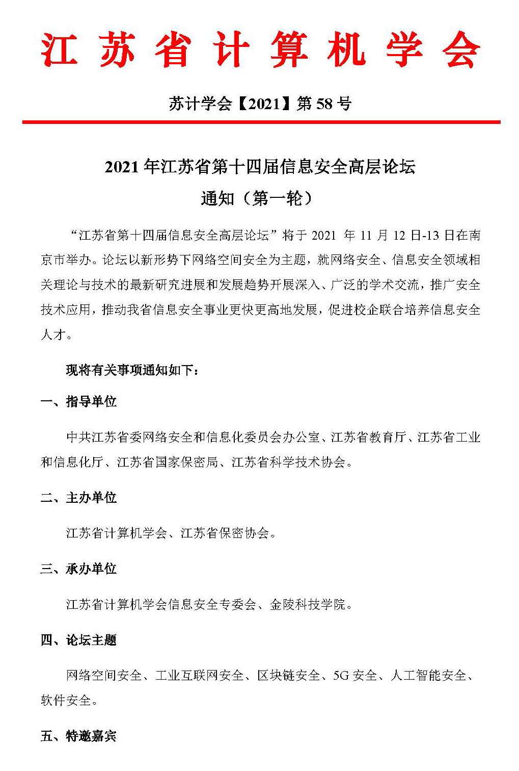 2021年江苏省第十四届信息安全高层论坛征文通知V5